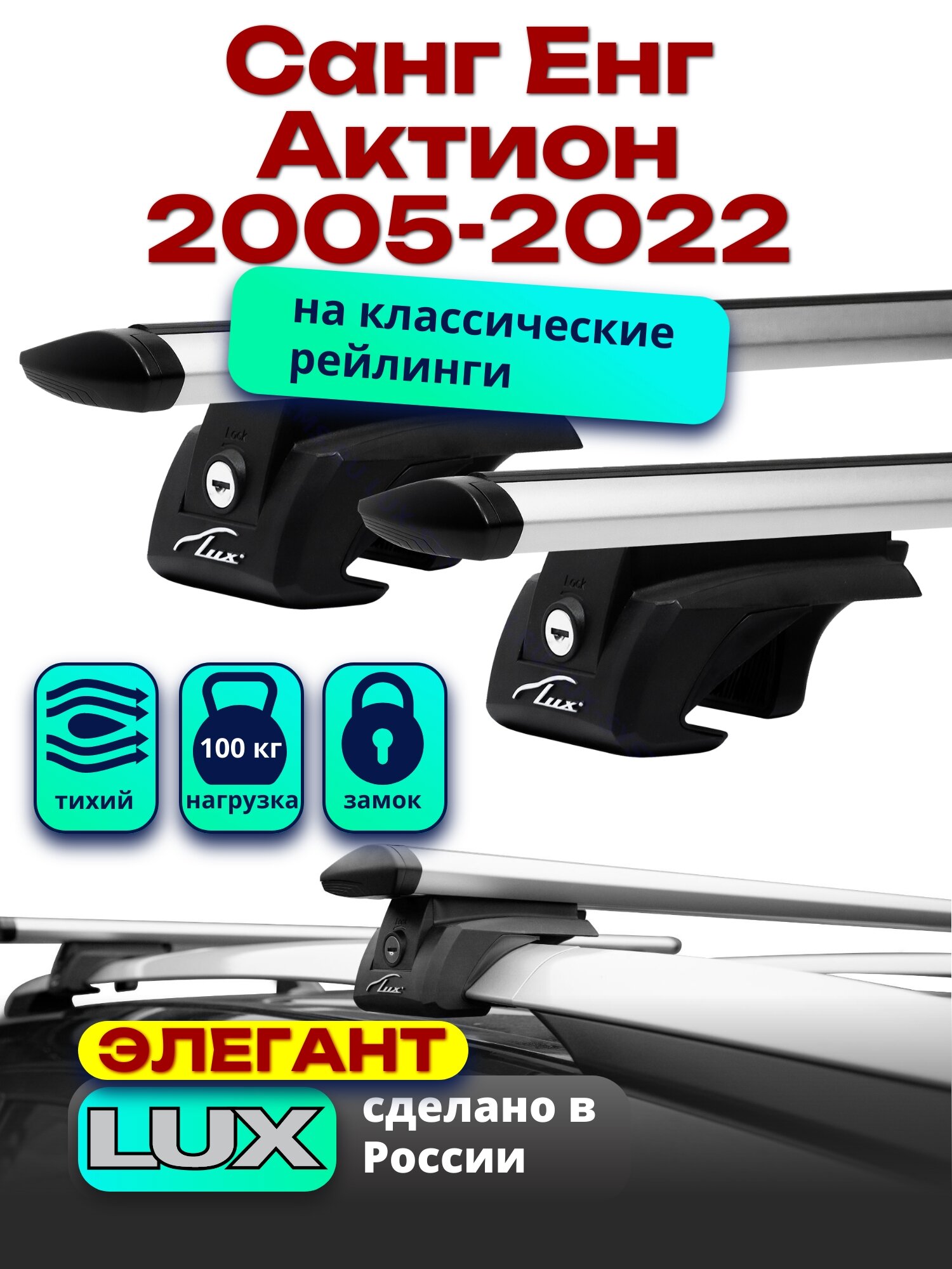 Багажник на крышу Санг Енг Актион 2005-2022 на рейлинги, дуги аэро-тревел, LUX элегант информация: