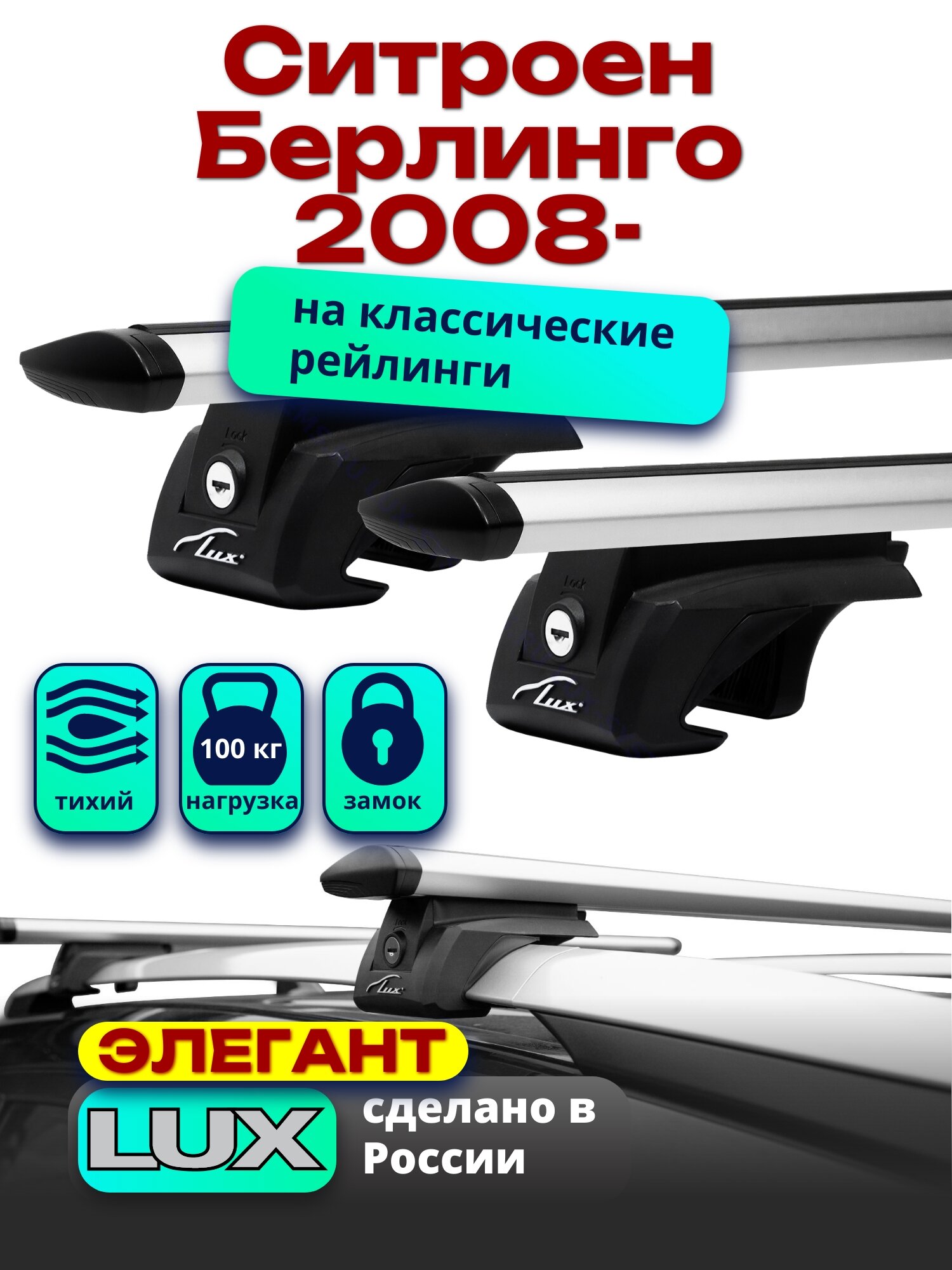 Багажник на крышу Ситроен Берлинго 2008-2024 на рейлинги, дуги аэро-тревел, LUX элегант информация: