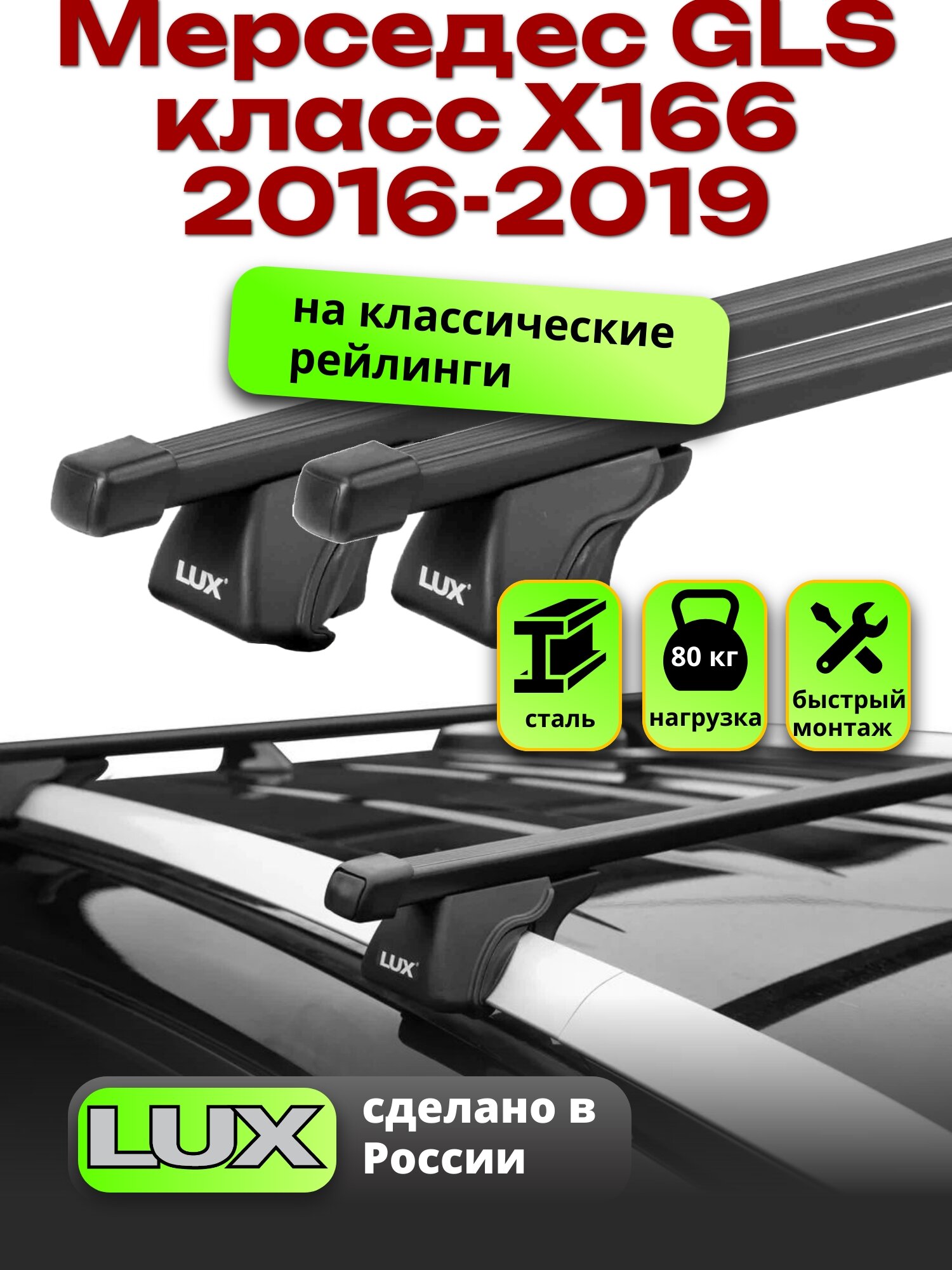 Отзывы на Багажник на крышу Мерседес GLS класс X166 2016-2019 на рейлинги, черный, LUX классик