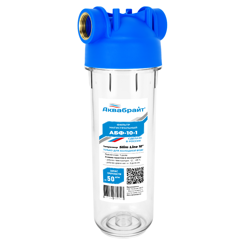 Фильтр Аквабрайт АБФ-10-1, стандарта SLIM LINE, подключение 1 дюйм информация: