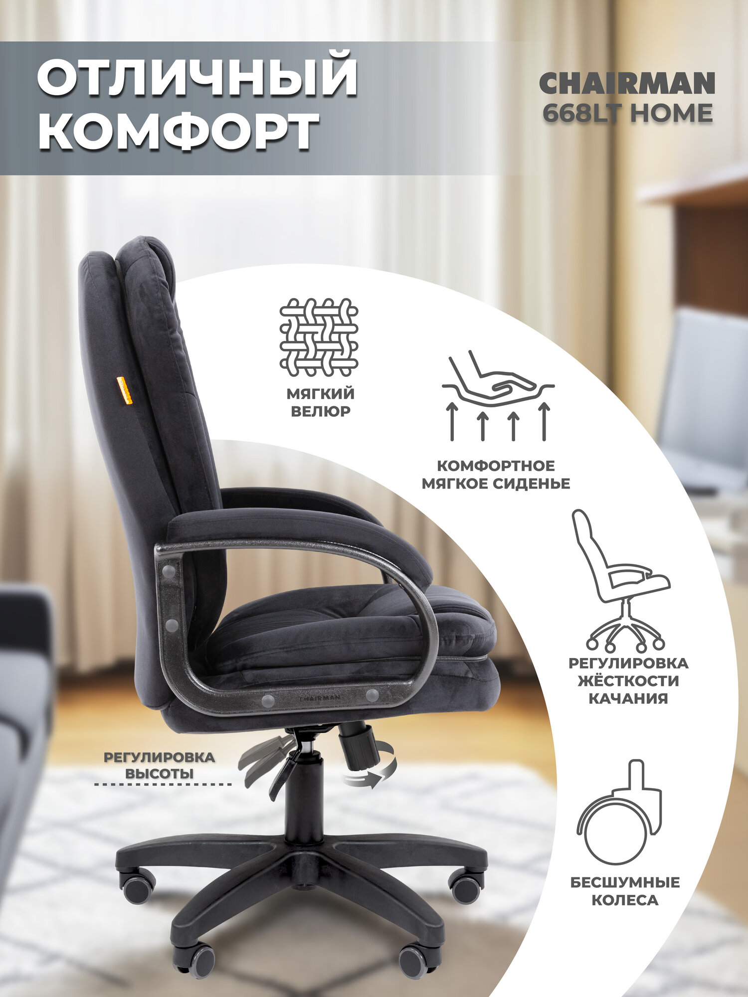 Компьютерное кресло для дома и офиса CHAIRMAN HOME 668 LT, ткань велюр, черный, механизм качания информация: