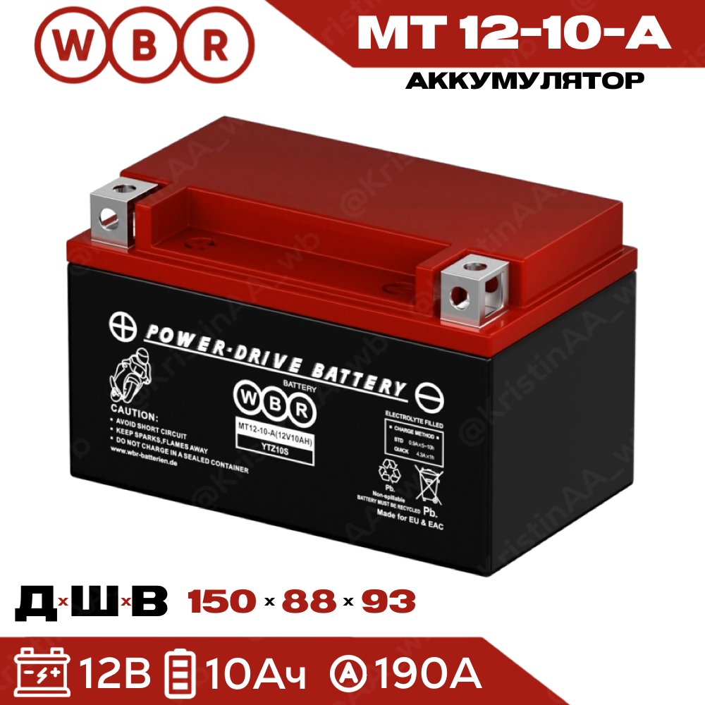 Стартерный свинцово-кислотный аккумулятор WBR SMT 12-10-A для мототехники информация:
