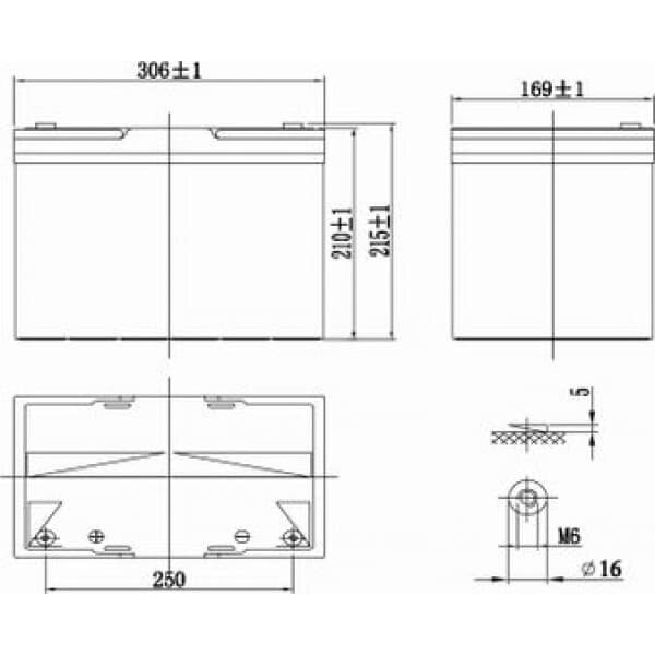 | Высота с учетом полюса (контактного вывода) | 215 мм |