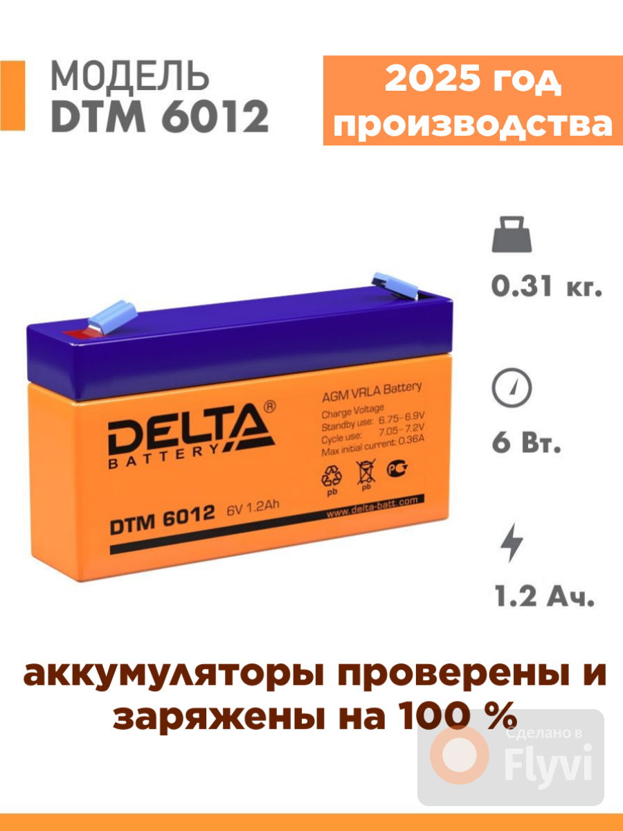 Отзывы на Аккумуляторная батарея для ИБП Delta Battery DTM 6012 ( 6V / 1.2Ah )
