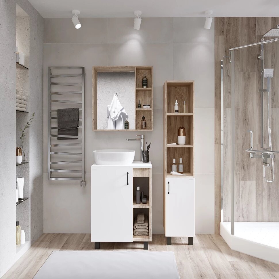Тумба под раковину Grossman ФЛАЙ-60 дуб сонома/белая 8 140 ₽