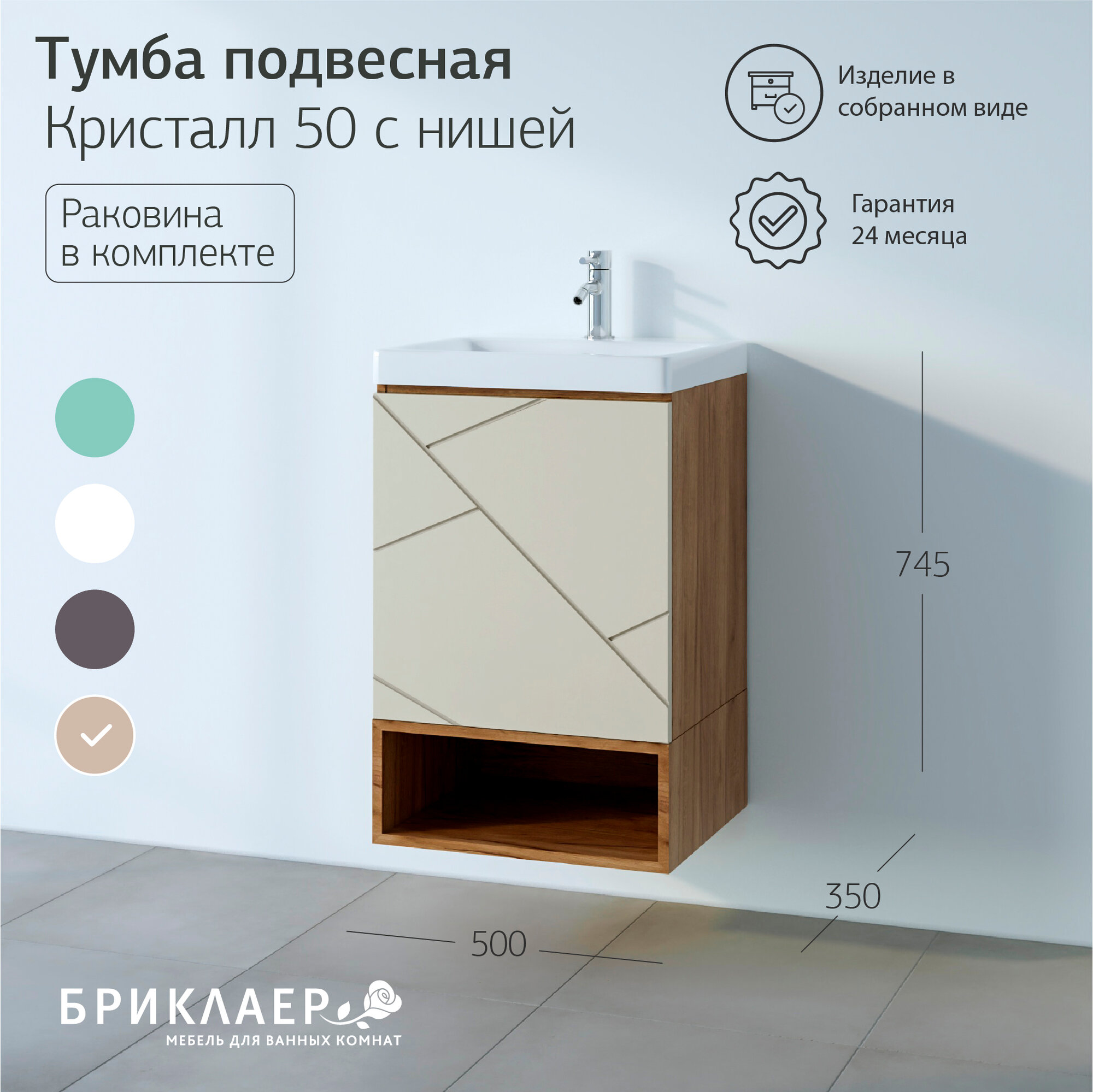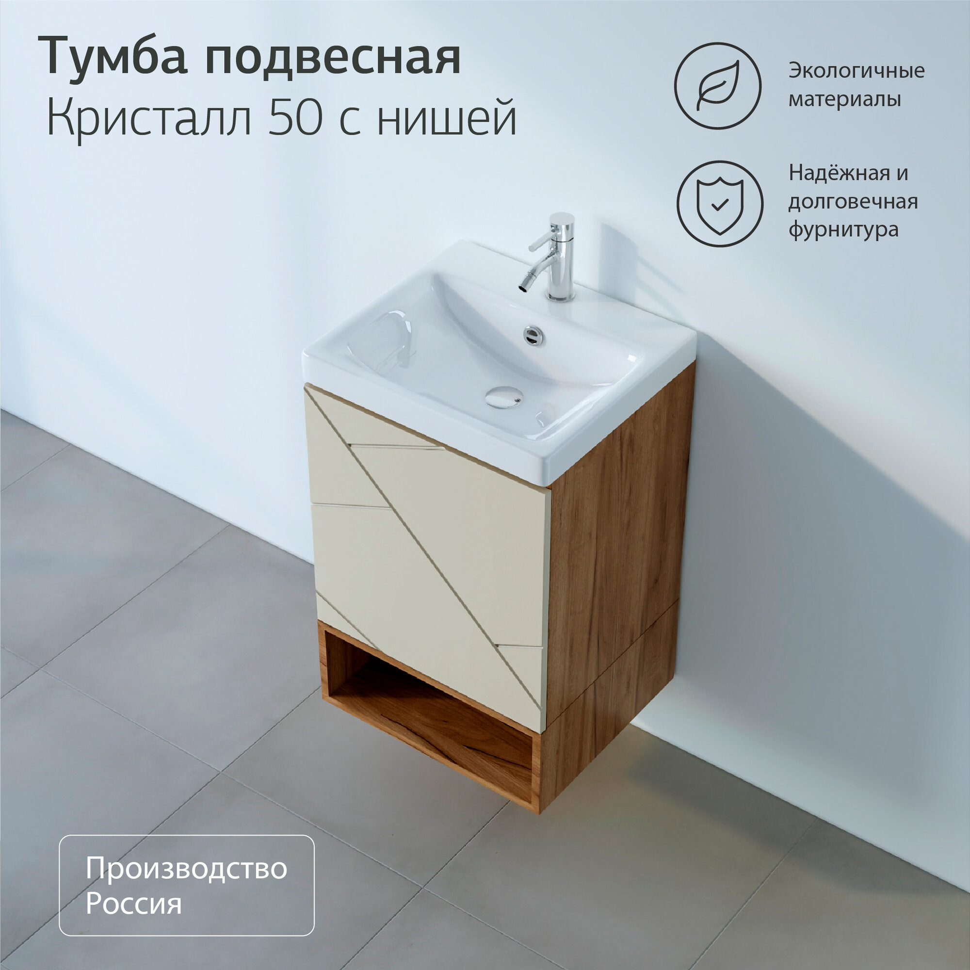 10 цен на Тумба с раковиной для ванной Кристалл 50 с нишей, Латте/дуб крафт табачный