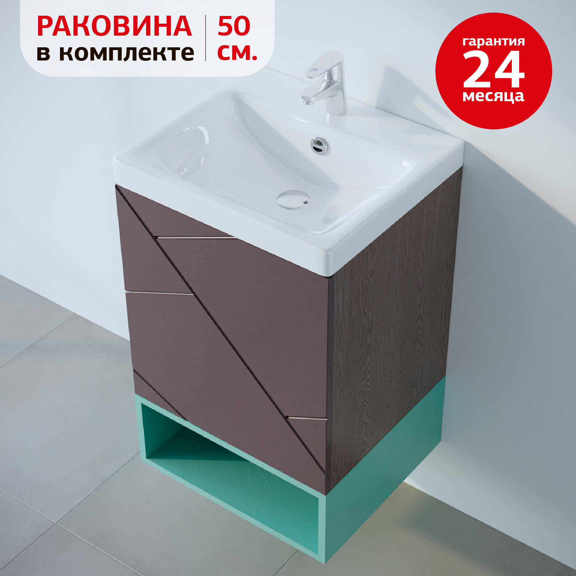 Тумба с раковиной для ванной Кристалл 50, с нишей. информация: