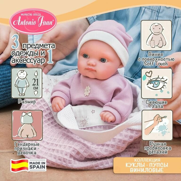 Кукла пупс Antonio Juan Реборн Пепита в сумочке 21 см виниловая 85212 информация: