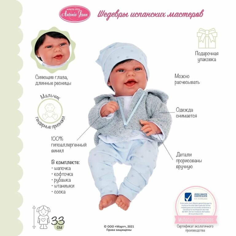 Отзывы на Кукла-пупс Antonio Juan Реборн Рамон в голубом 33 см виниловая 6033