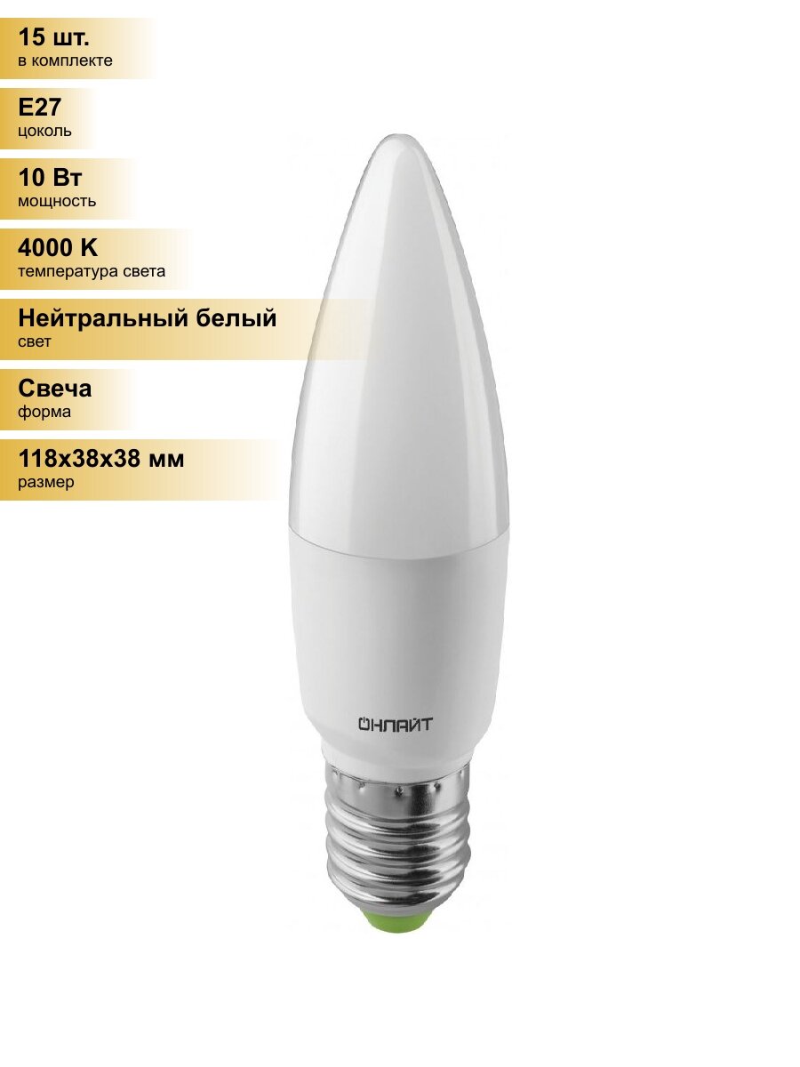 (15 шт.) Светодиодная лампочка онлайт свеча C37 E27 10W(750lm)4000K4K118х38OLL-C37-10-230-4K-E27 61960 Нейтральный белый. Цоколь E27 информация: