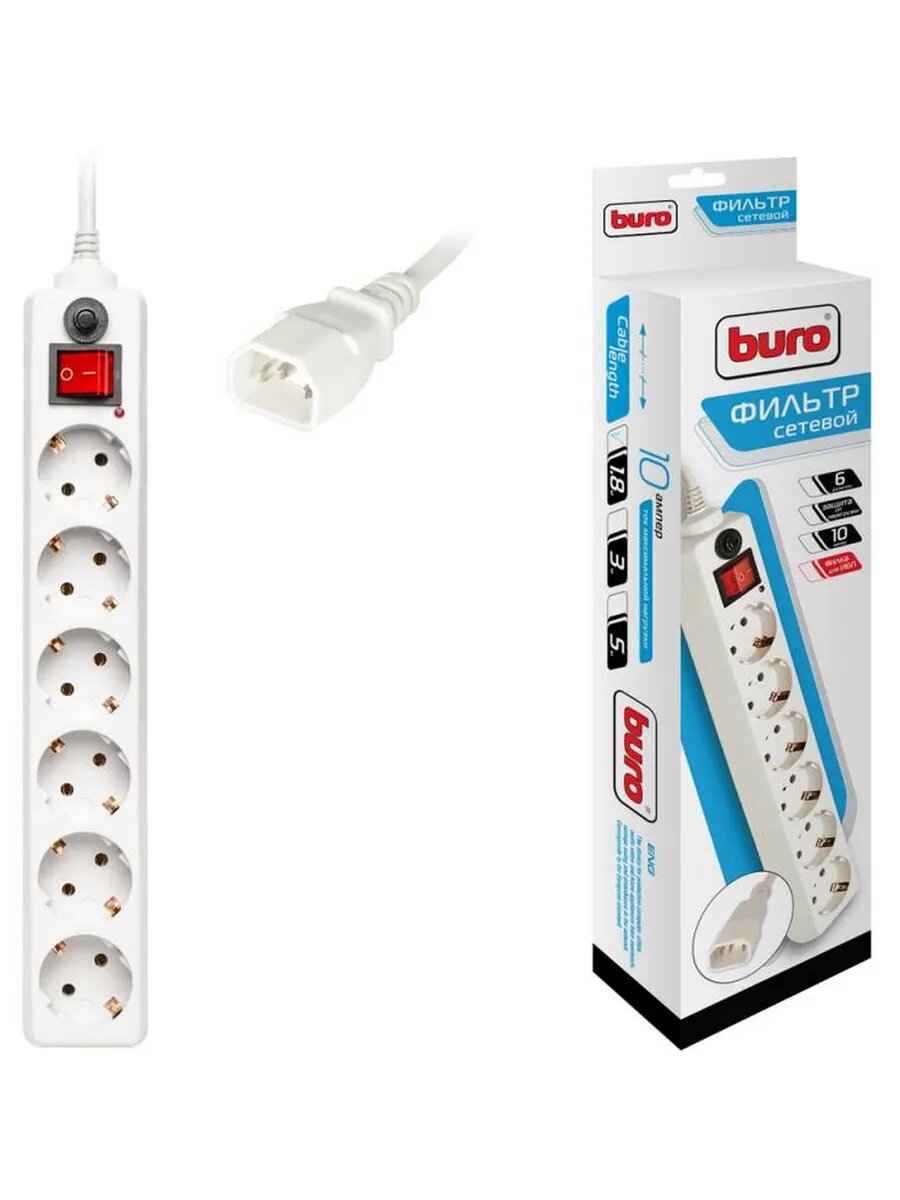 Сетевой фильтр Buro 600SH-1.8-W, 6 розеток, 1.8 м, с/з, 10А / 2200 Вт
