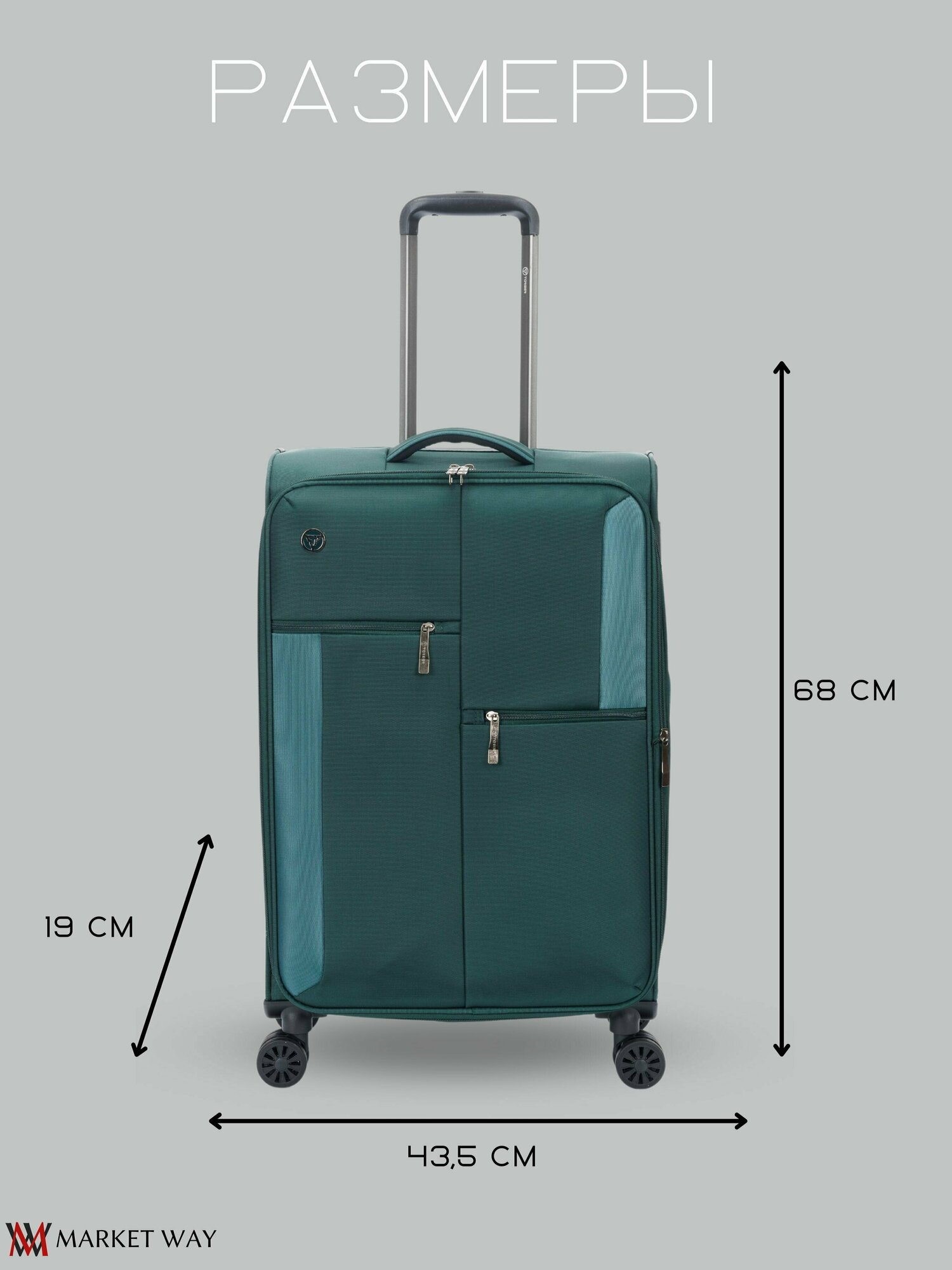 Чемодан Torber Seyd, тёмно-зелёный, 43,5 х 19 х 68 см, 56 л