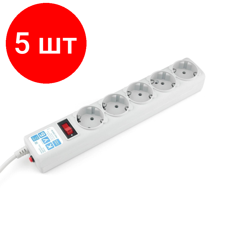 Комплект 5 штук, Сетевой фильтр Power Cube B 1.9 м 5 розеток (серый) 10А/2.2кВт(SPG-B-6) информация: