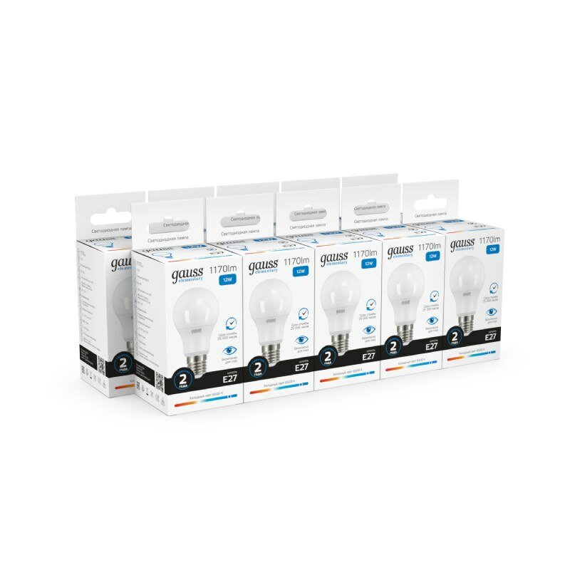 Отзывы на Лампа светодиодная Gauss Elementary 12Вт, 1170Лм, E27, A60, 6500K (10шт)