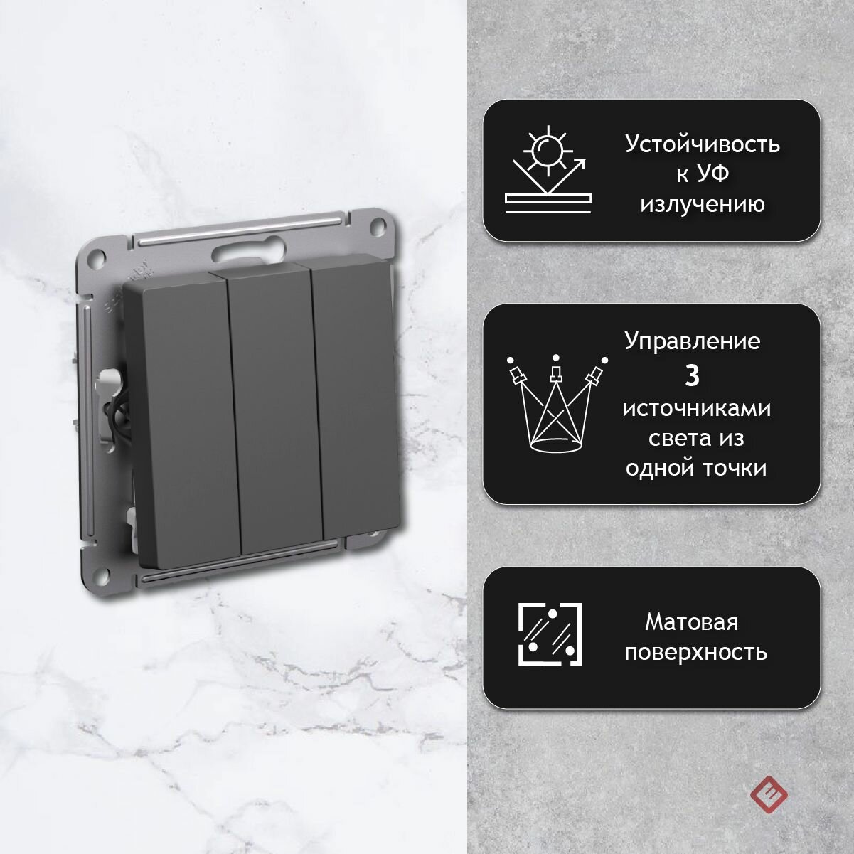 Отзывы на Выключатель трехклавишный (Базальт), Systeme Electric AtlasDesign (Комплект 4шт)