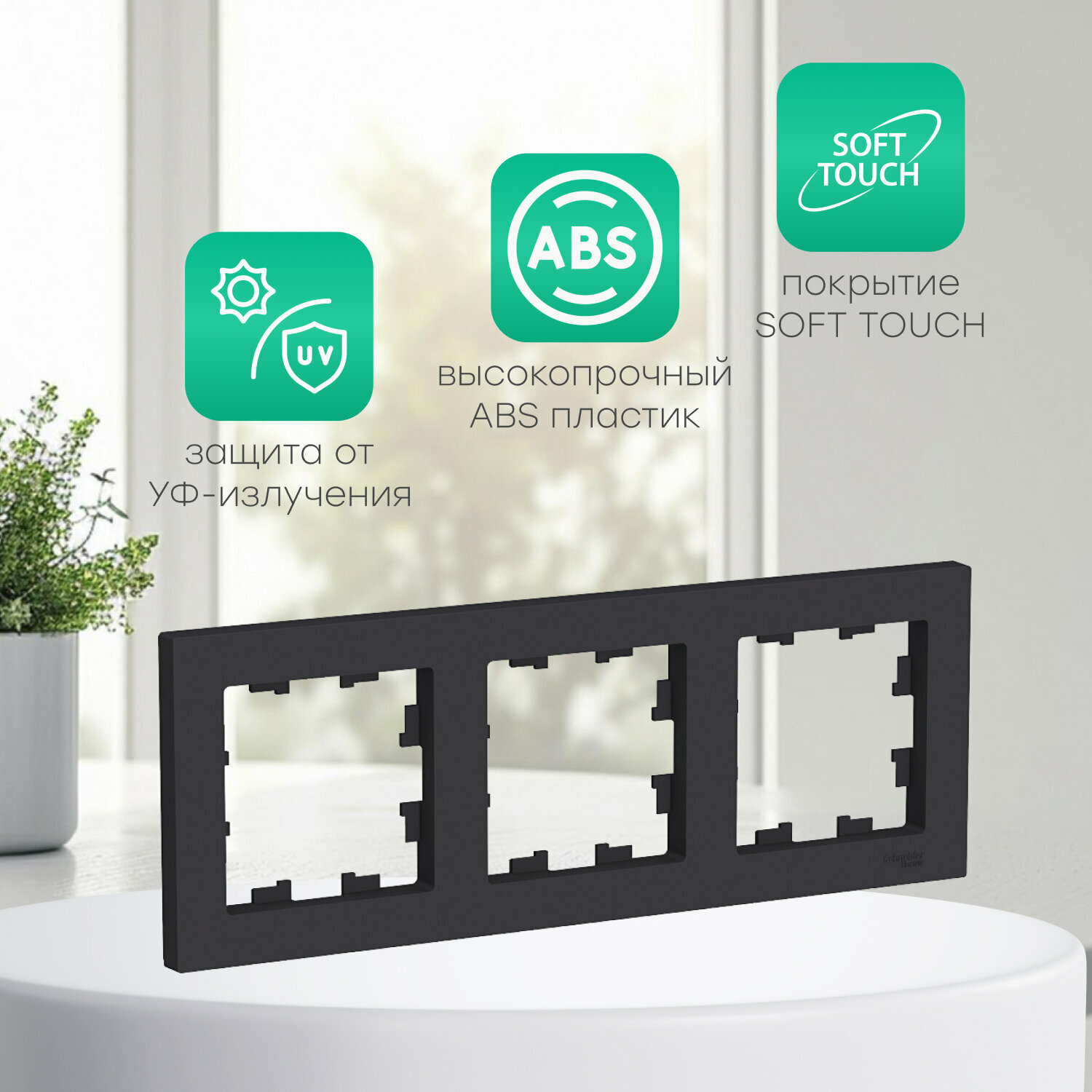 10 цен на Рамка Schneider Electric "AtlasDesign", ABS-пластик, 3 гнезда, цвет карбон (комплект 3 шт.)