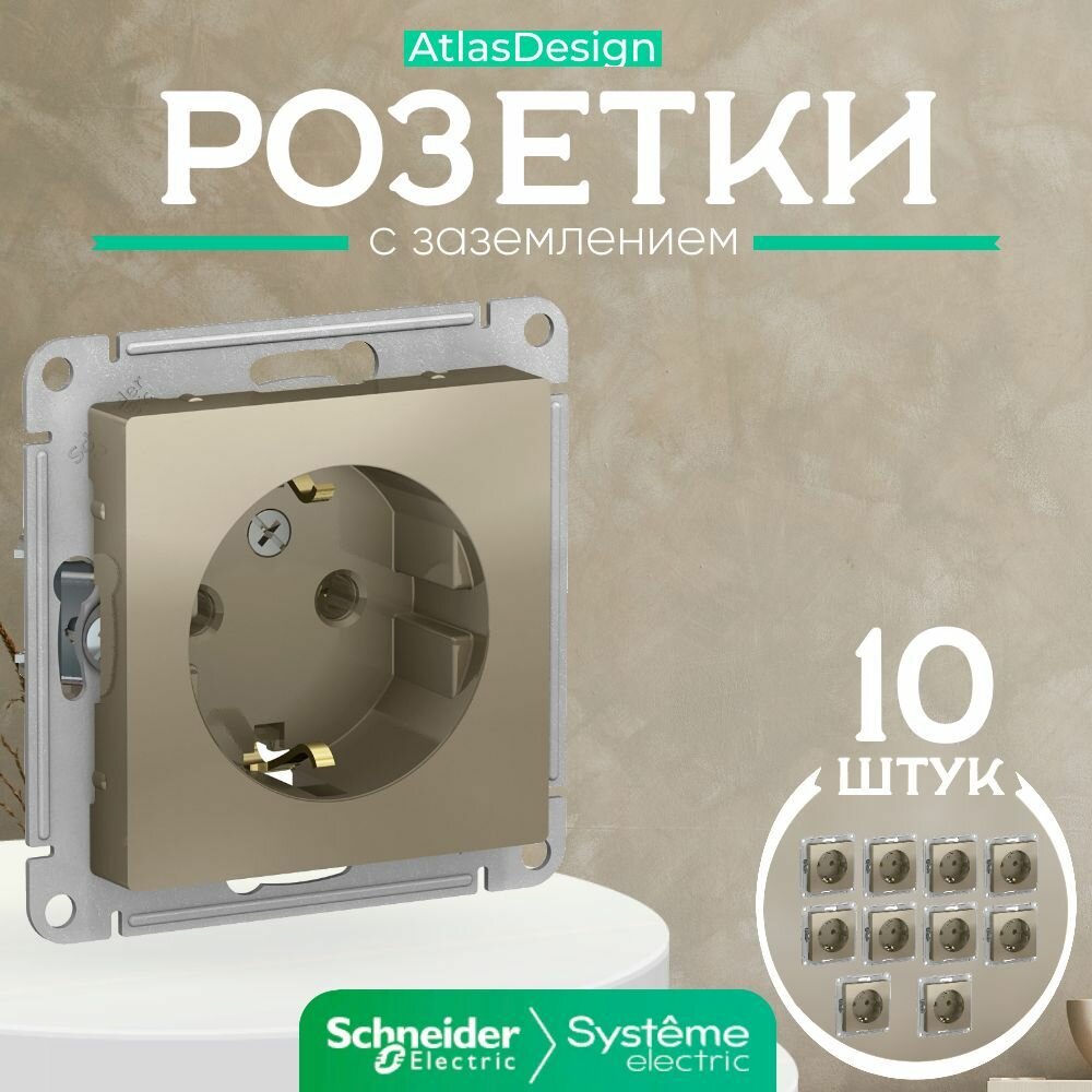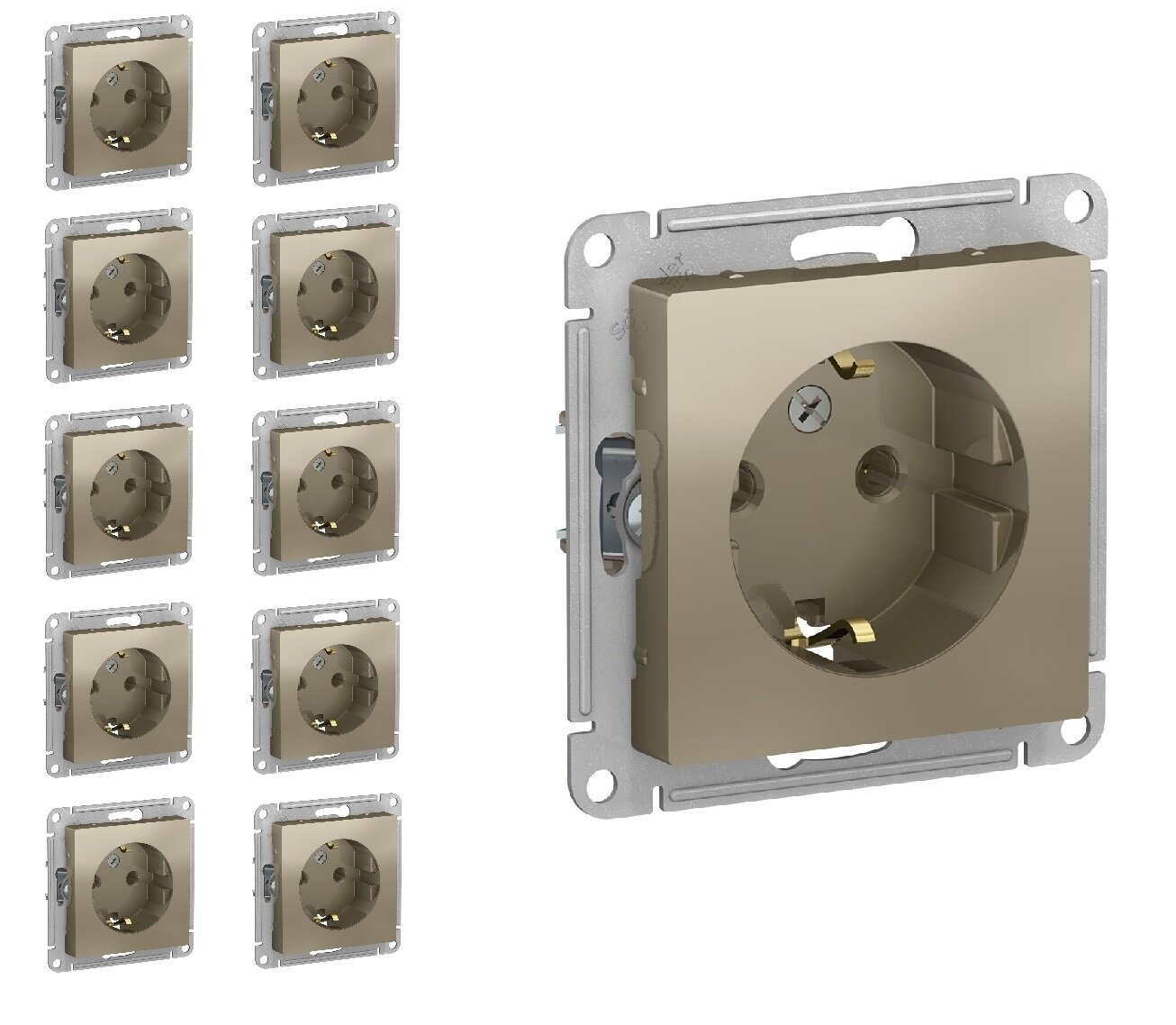 Розетка 1-м AtlasDesign ATN000543, комплект 10 штук, 16А IP20 механизм с заземлением, скрытый монтаж, цвет шампань информация: