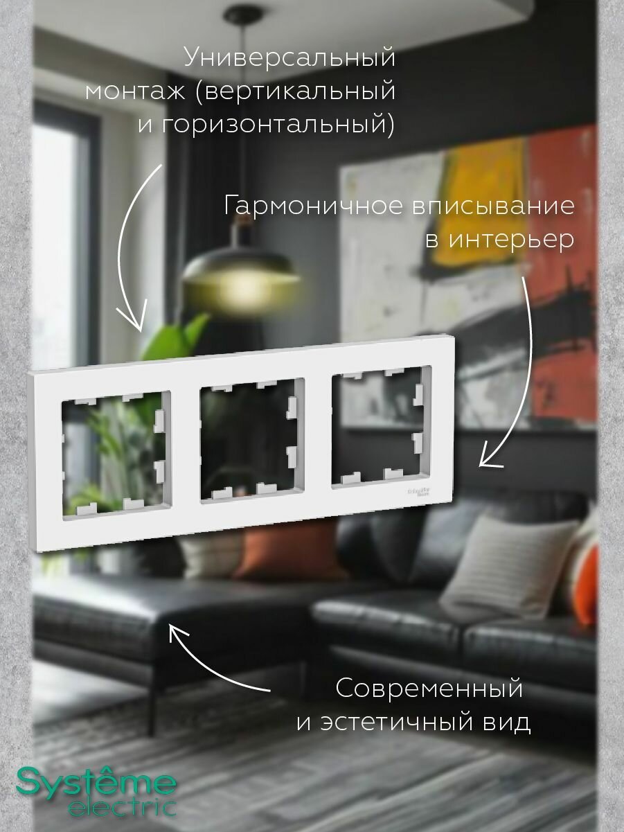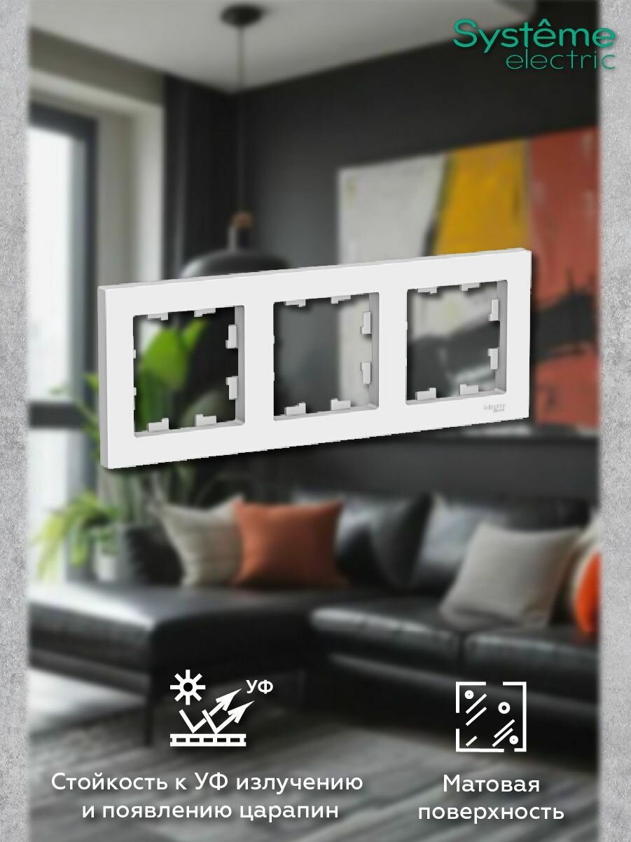 Рамка Systeme Electric Atlas Design тройная для розеток и выключателей белый - 4 шт. 1 442 ₽