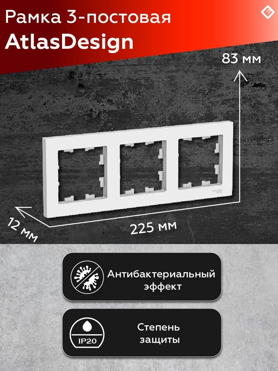 Рамка для розетки и выключателя 3 поста (Лотос), Systeme Electric AtlasDesign информация: