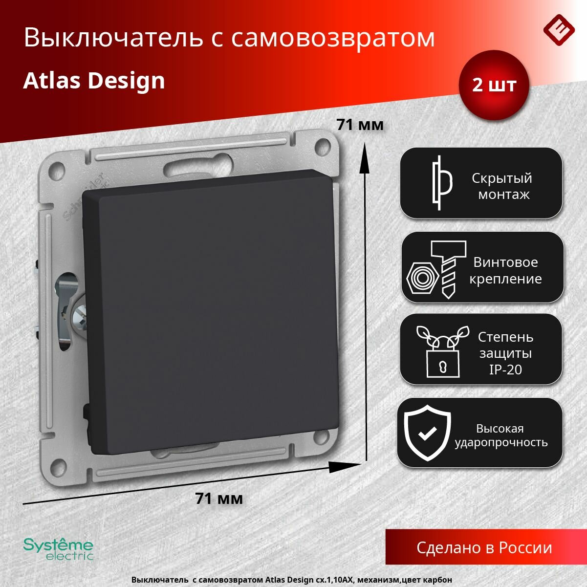 Выключатель с самовозвратом (карбон), сх.1, 10АХ, механизм Schneider Electric AtlasDesign (комплект 2шт) информация: