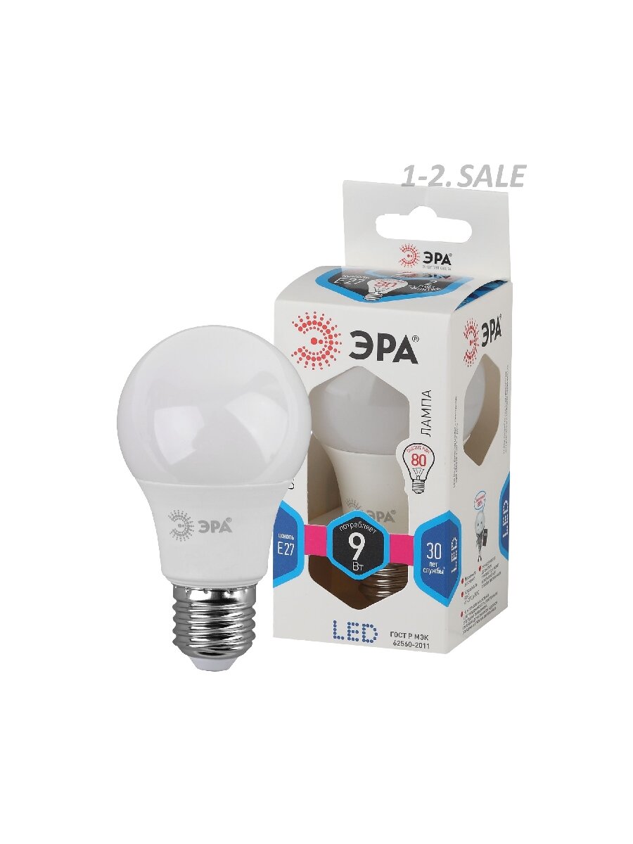 Отзывы на (5 шт.) Светодиодная лампочка ЭРА стандарт ЛОН A60 E27 9W(720lm) 4000K 4K 110x60 9w-840 5418 Нейтральный белый. Цоколь E27