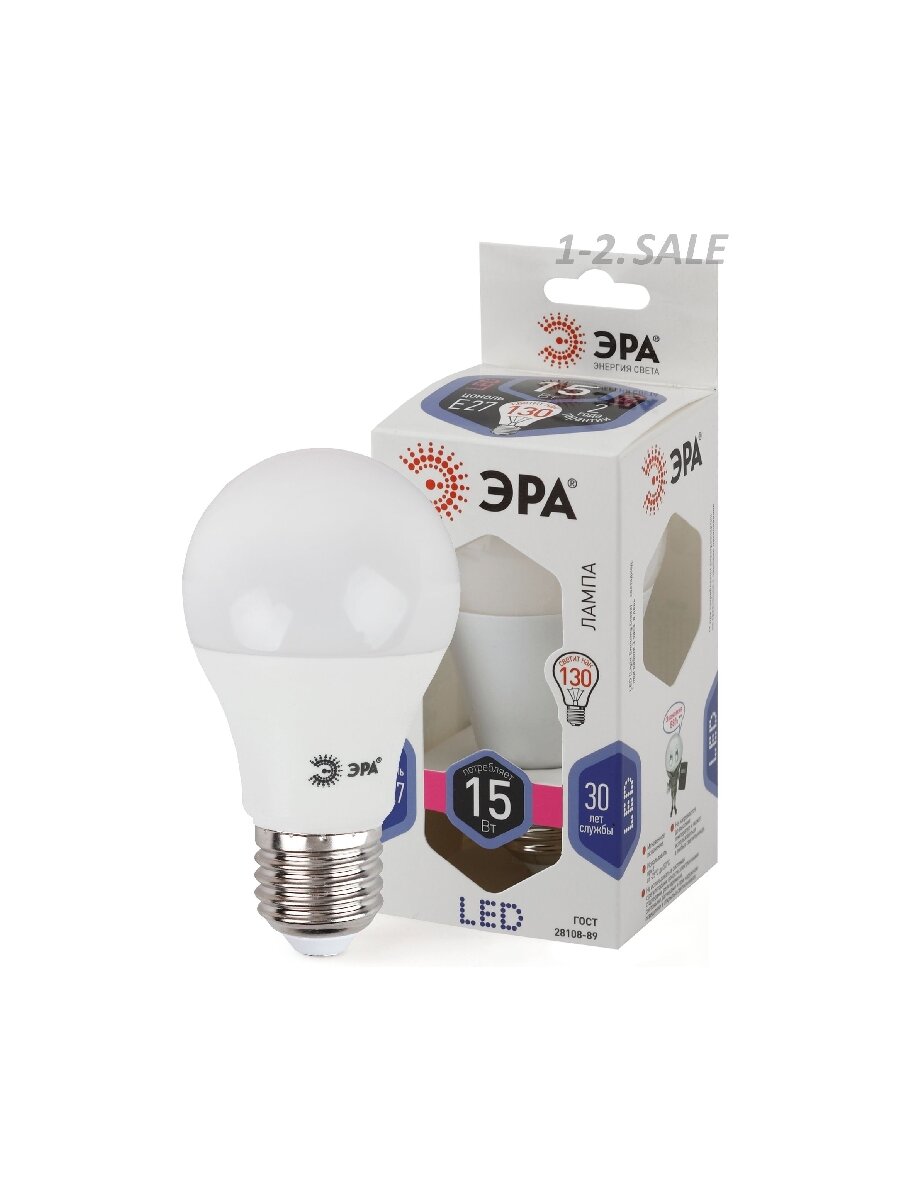 Отзывы на (2 шт.) Светодиодная лампочка ЭРА стандарт ЛОН A60 E27 15W(1300lm) 6000K 6K 124x60 A60 E27 15W-860-E27 0294 Холодный белый. Цоколь E27