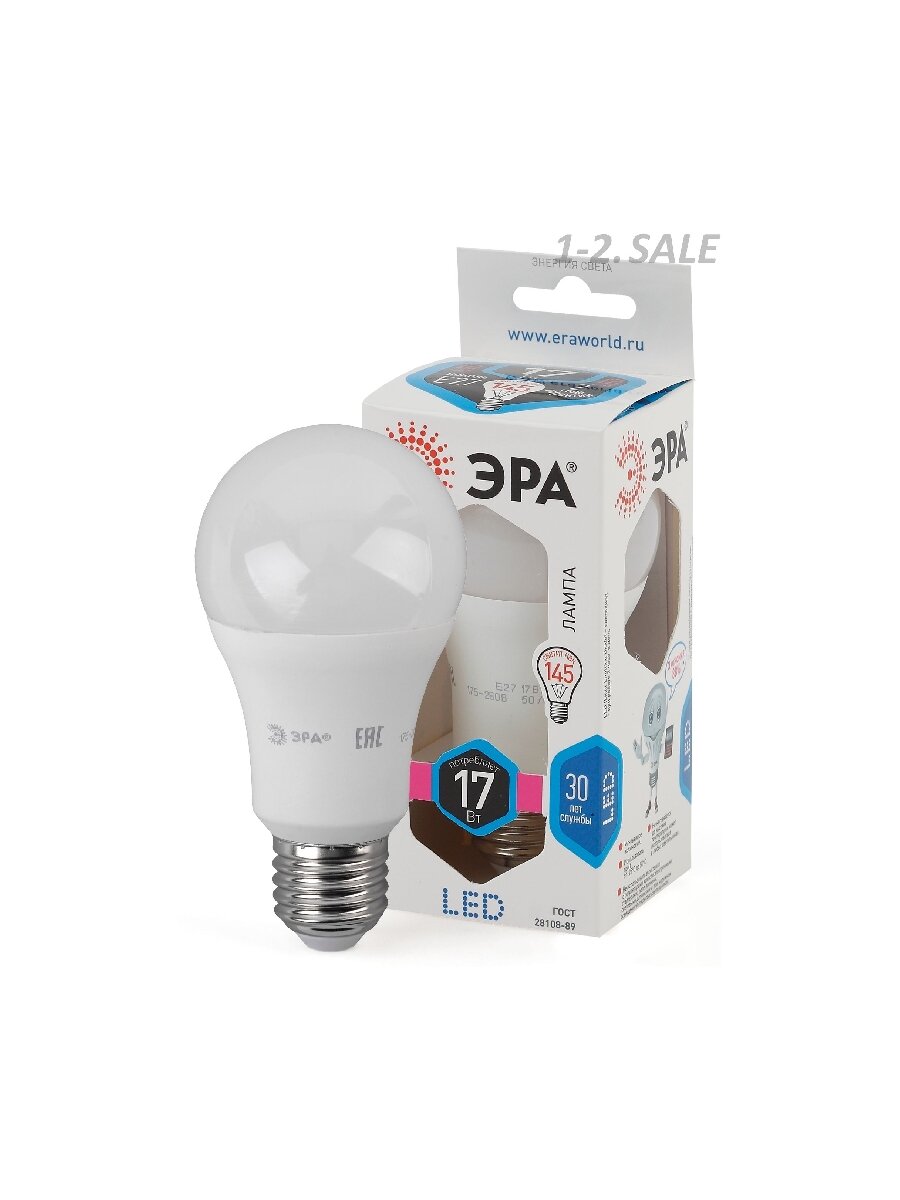 Отзывы на (5 шт.) Светодиодная лампочка ЭРА стандарт ЛОН A60 E27 17W(1360lm) 4000K 4K 120x60 A60-17W-840-E27 1665 Нейтральный белый. Цоколь E27