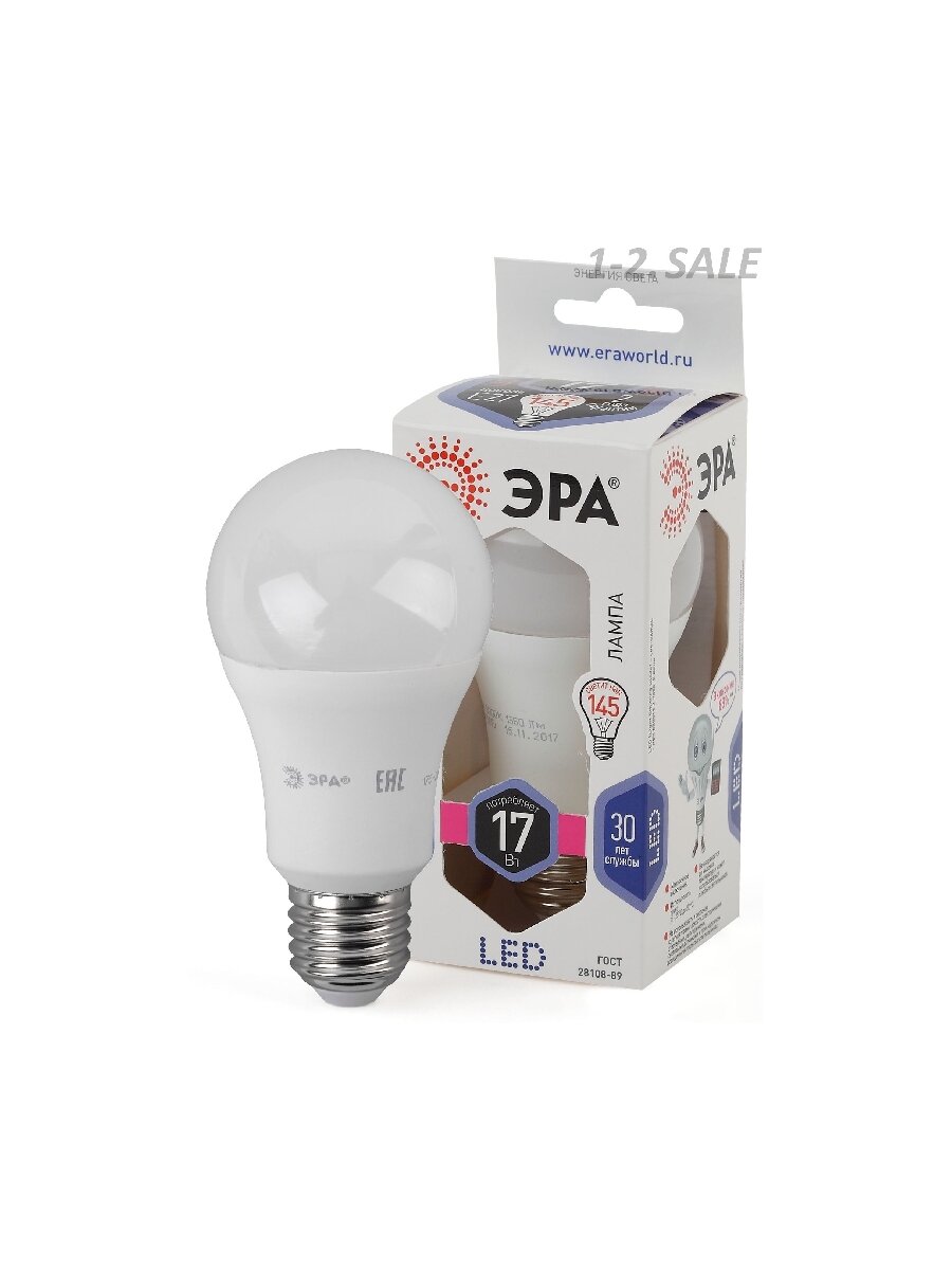 Отзывы на (5 шт.) Светодиодная лампочка ЭРА стандарт ЛОН A60 E27 17W(1360lm) 6000K 6K 120x60 A60-17W-860-E27 1672 Холодный белый. Цоколь E27