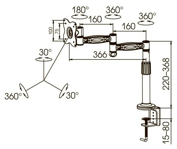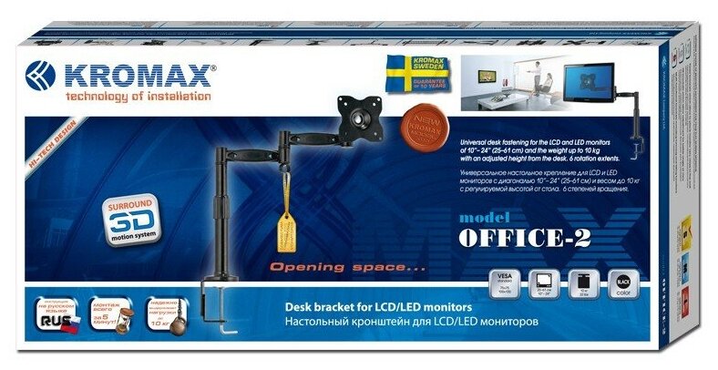 Крепление для мониторов Kromax Office-2 [15" - 32", до 10 кг, VESA - 100x100, 75x75, черный] информация: