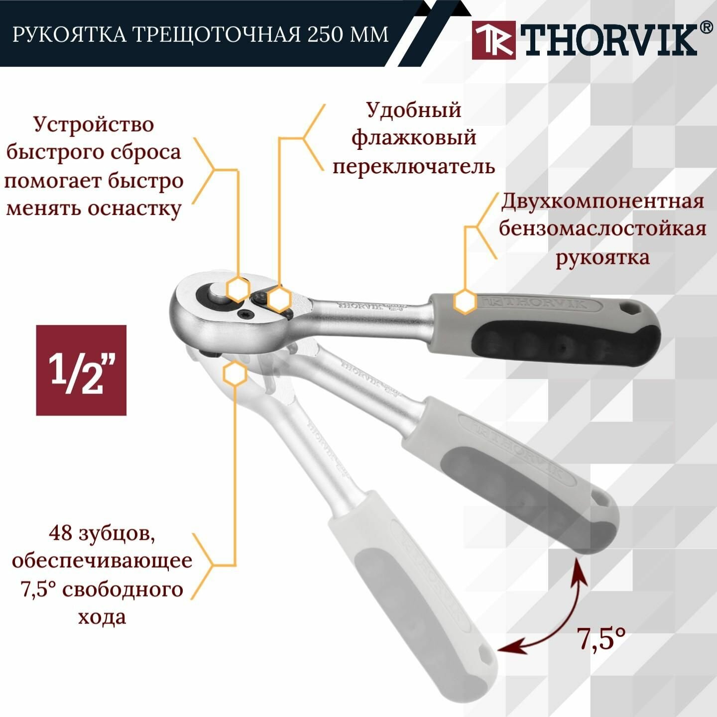 Трещотка Thorvik 1/2"DR, 48 зубцов, 250 мм, RH01245 информация:
