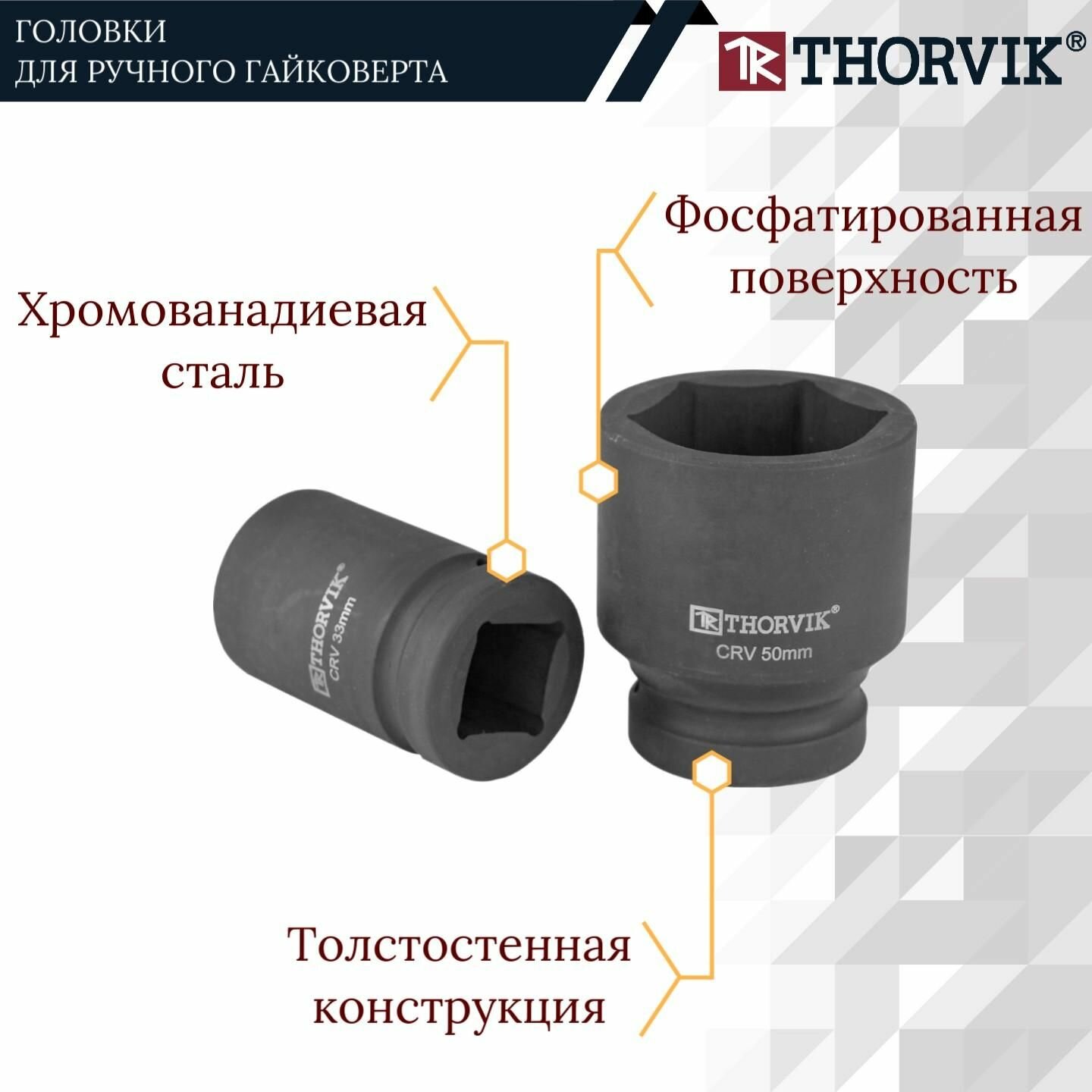 THORVIK LSWS11S набор головок торцевых для ручного гайковерта 1 dr, 21-50 мм, 11 предметов