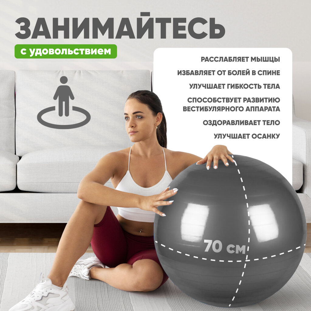 Фитбол, спортивный, гимнастический мяч для фитнеса, 70 см 999 ₽