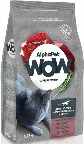 Корм сухой Alphapet WOW Superpremium с говядиной и печенью для взрослых домашних кошек и котов, 750 г