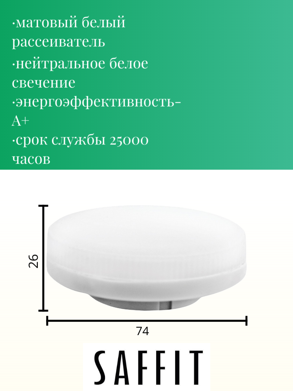 Лампа светодиодная SAFFIT SBGX5308, GX53, 8W, 4000K, белый свет, 10 шт 800 ₽