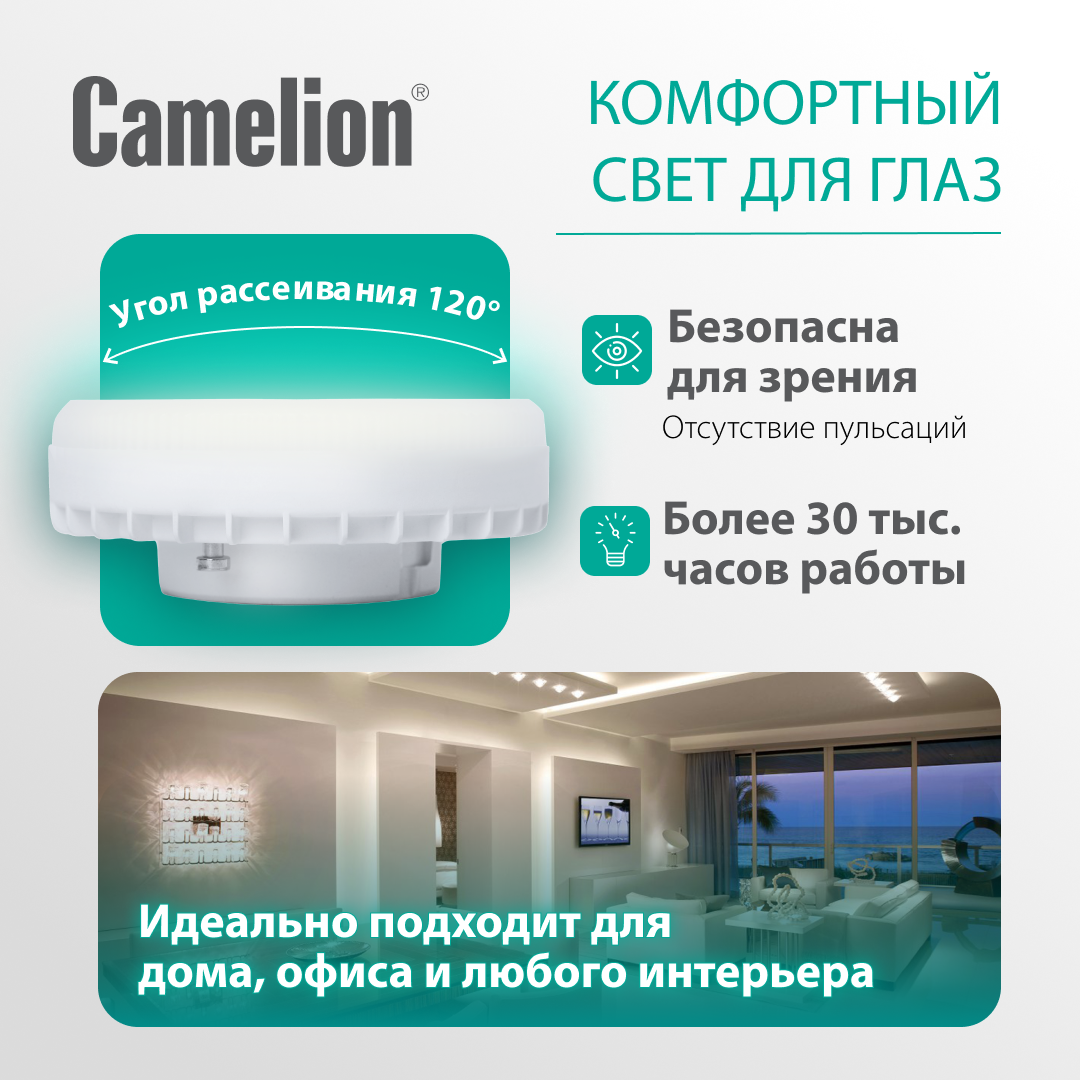 Отзывы на Светодиодная лампочка Camelion GX53, 12Вт, 6500К холодный белый свет, 5 шт в комплекте