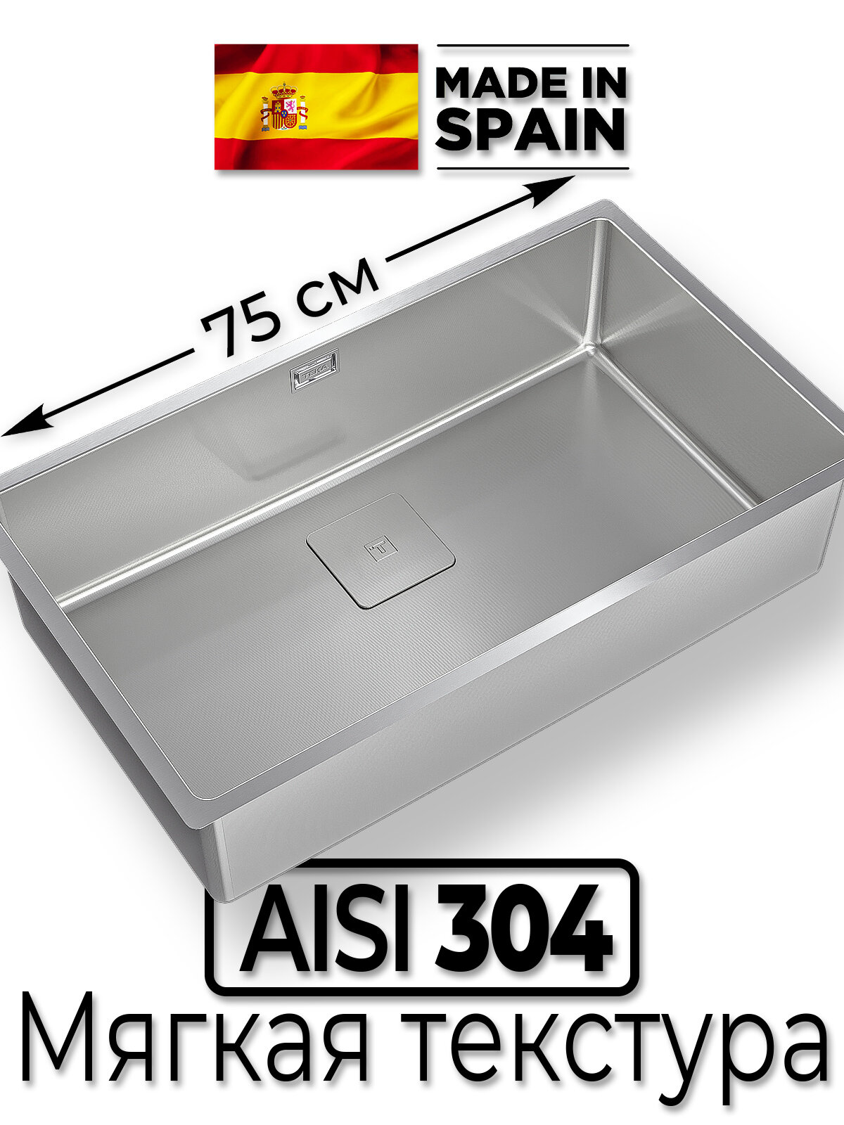 Мойка FABIA 62322L сатин врезная 78х48 см левая + большой сифон с переливом