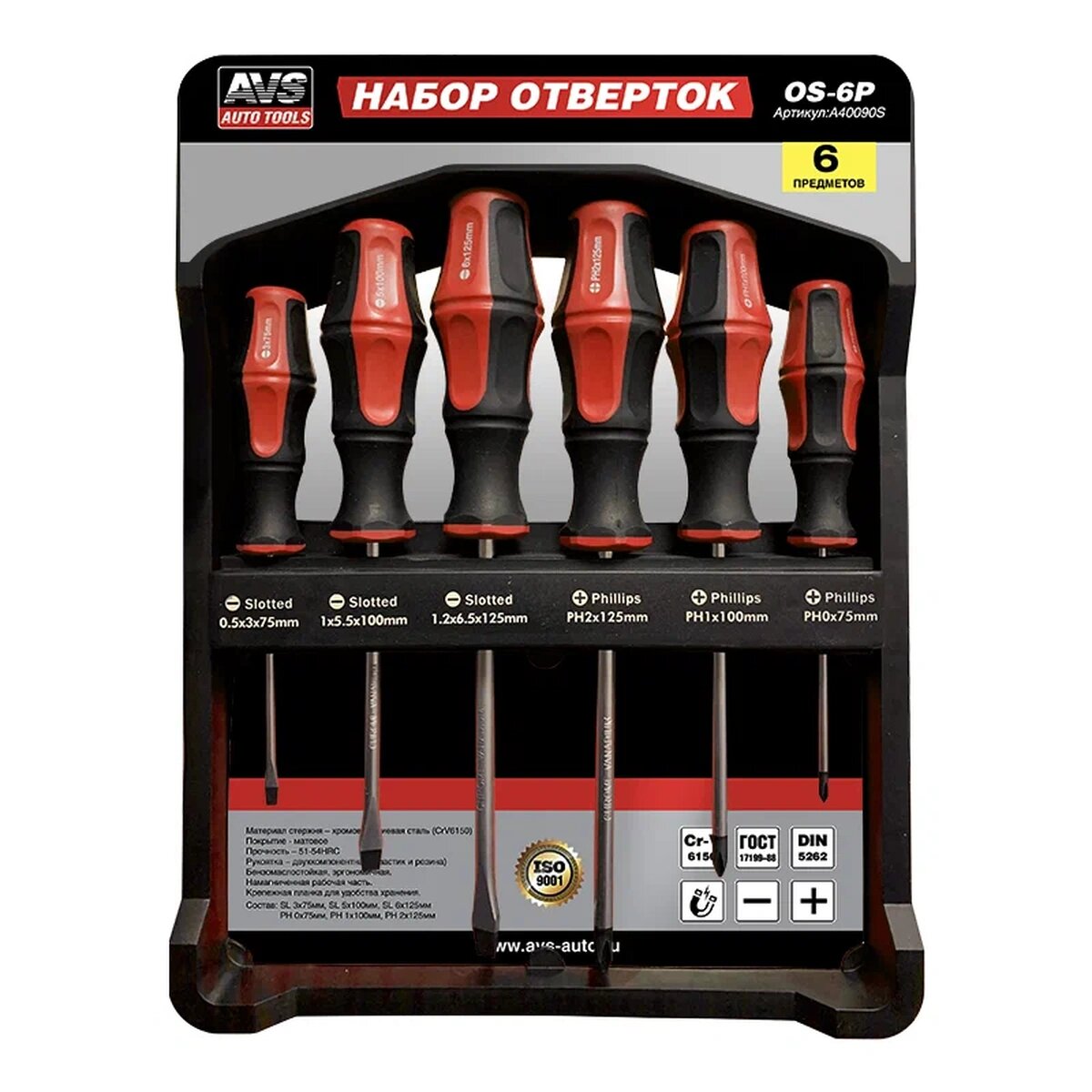 Набор отверток AVS OS-6P, 6 шт, с крепежной планкой, хромированная сталь информация: