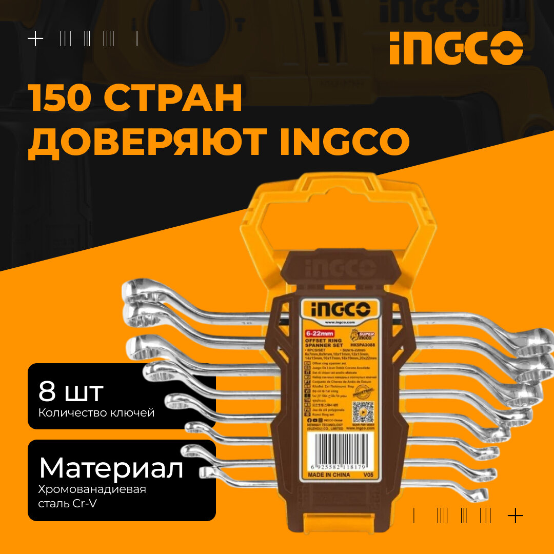 10 цен на Набор накидных гаечных ключей изогнутых INGCO INDUSTRIAL HKSPA3088, 6-22 мм, 8 предметов