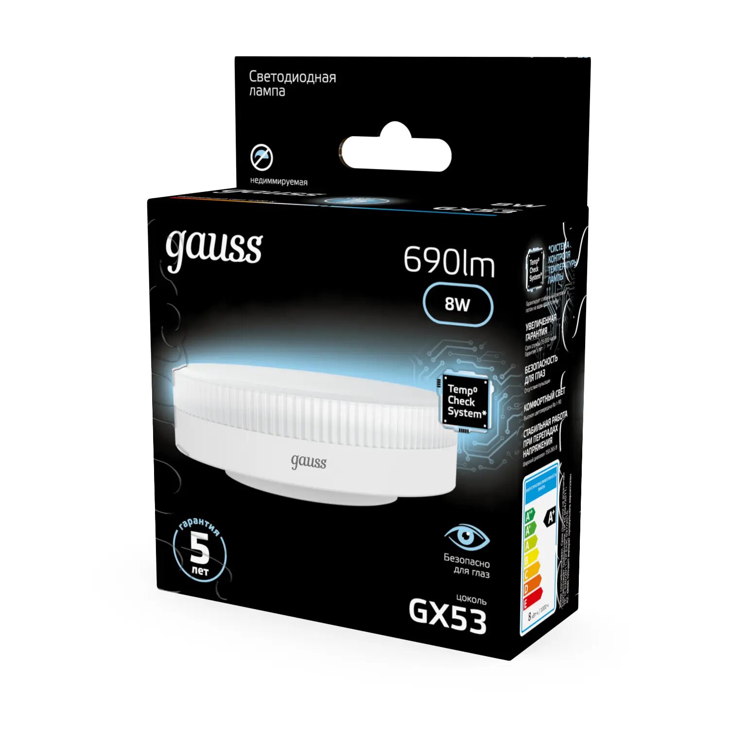 Набор из 5 штук Лампа Gauss GX53 8W 690lm 4100K LED 1/10/100 информация: