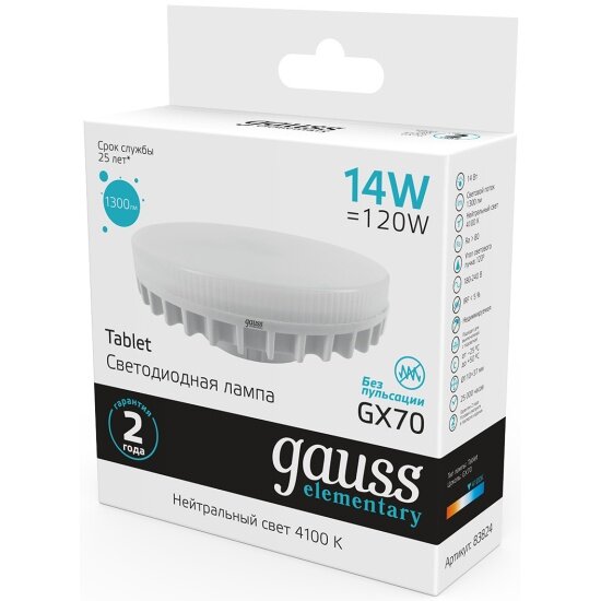 Отзывы на Светодиодная лампа Gauss Elementary GX70 14W 1300lm 4100K LED 1/10/50