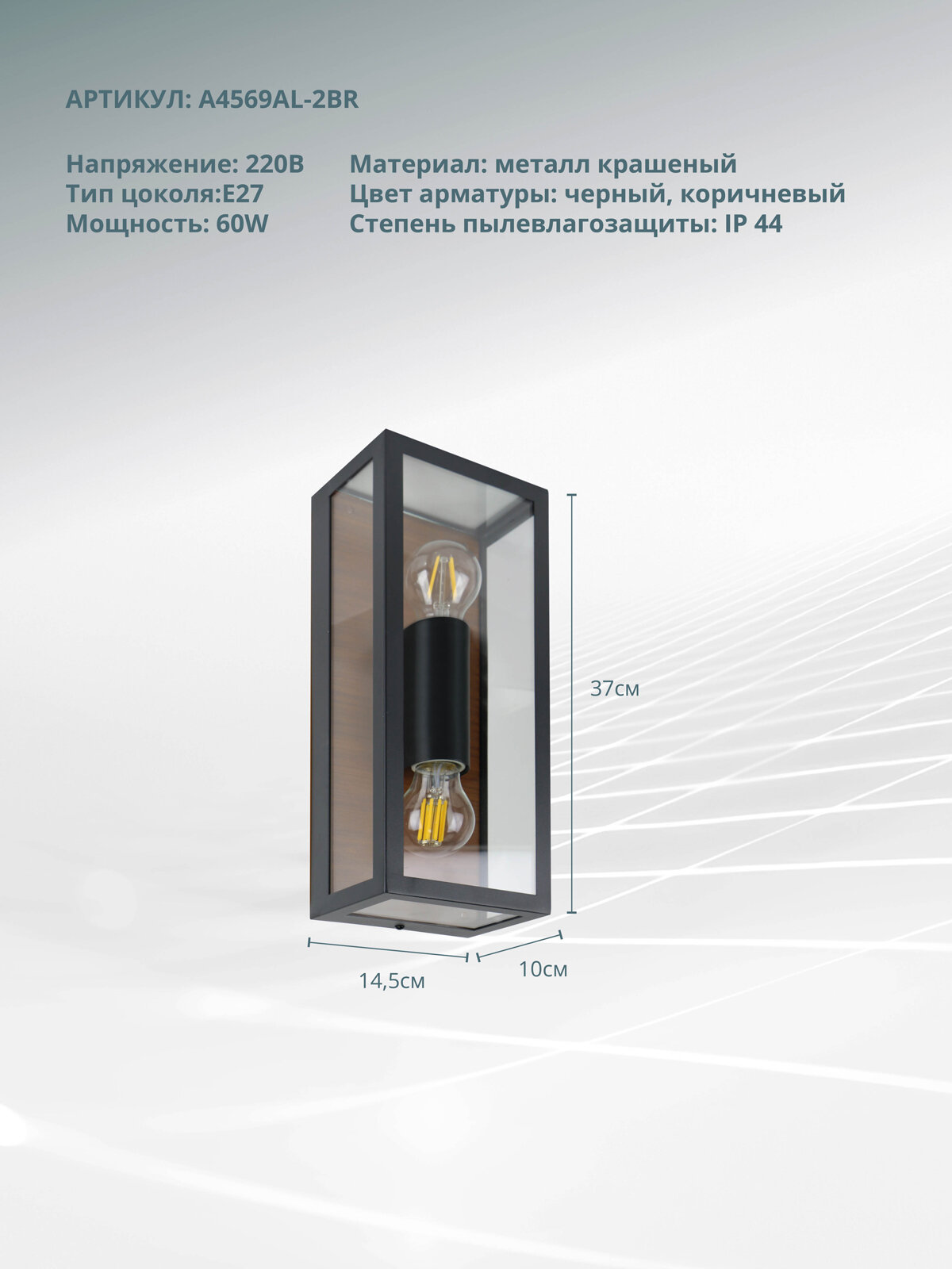 Уличный настенный светильник Arte lamp BELFAST A4569AL-2BR / E27 / 2х60Вт / IP44 /коричневый информация: