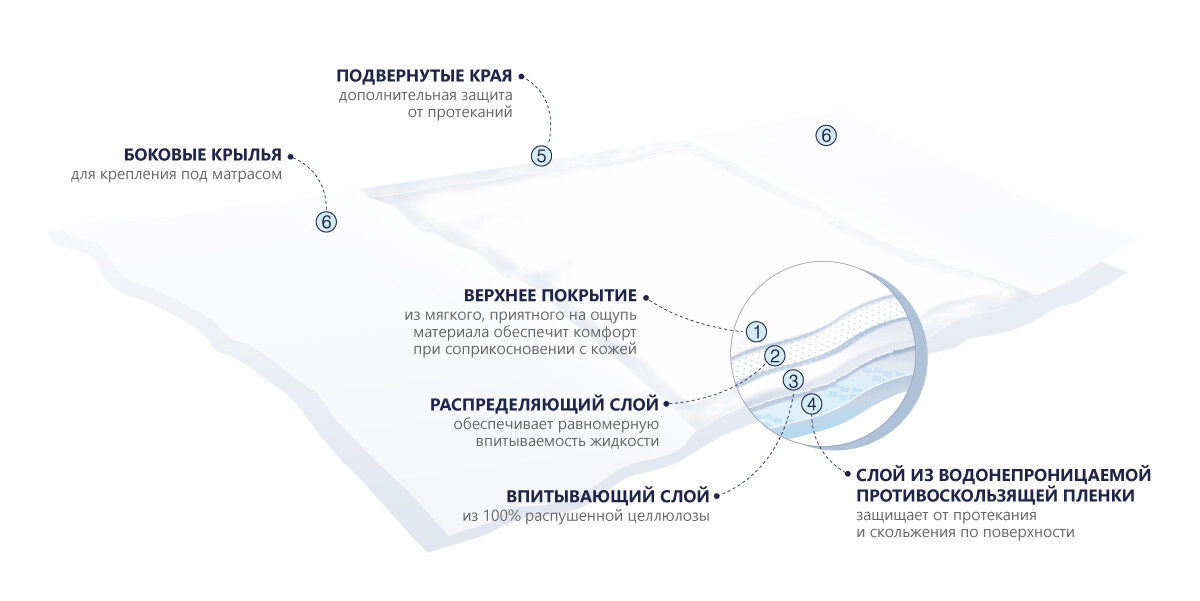 Seni Soft / Сени Софт - одноразовые впитывающие пеленки, 60x60 см, 5 шт.
