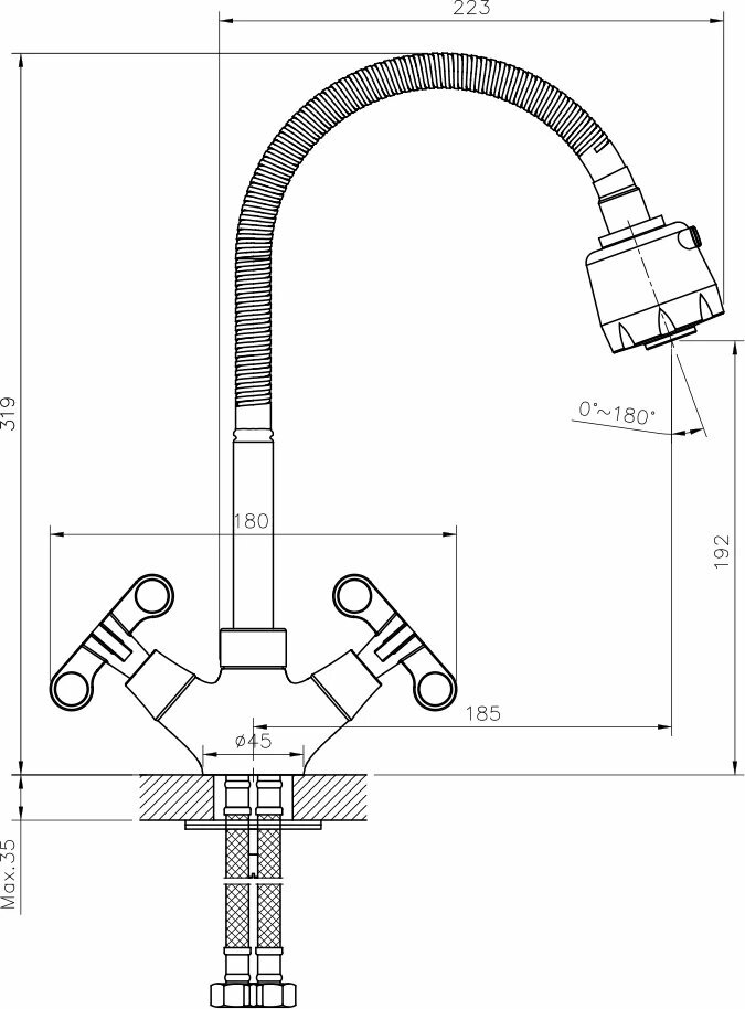 Смеситель Кухня RS42-75 Двуручный С Гибким Изливом Хром /1/ Rossinka .
