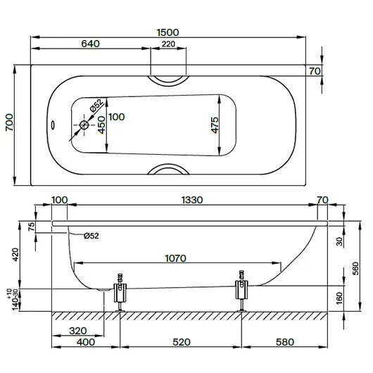 Ванна чугунная Provokateur Agate 160х70 с отверстиями под ручки