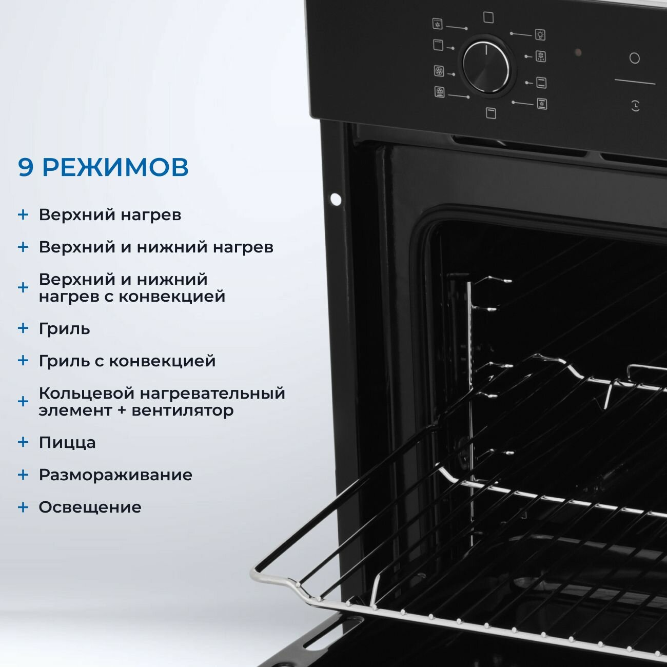 Духовой шкаф электрический ZUGEL ZOE602B, объем 75 л, 9 режимов работы, таймер, сенсорное управление, дисплей, черный 45 090 ₽
