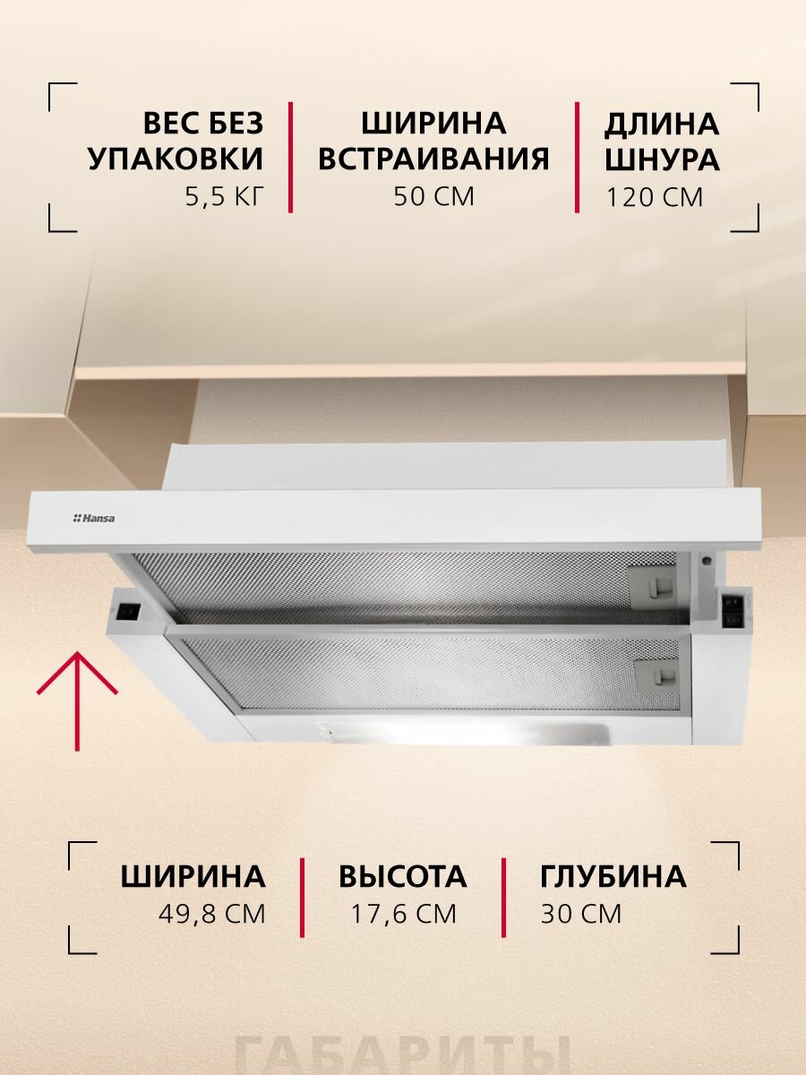 Отзывы на Телескопическая вытяжка Hansa OTP5233WH, 50 см, механическое управление, 3 скорости, режимы отвода и рециркуляции, светодиодная подсветка, белая