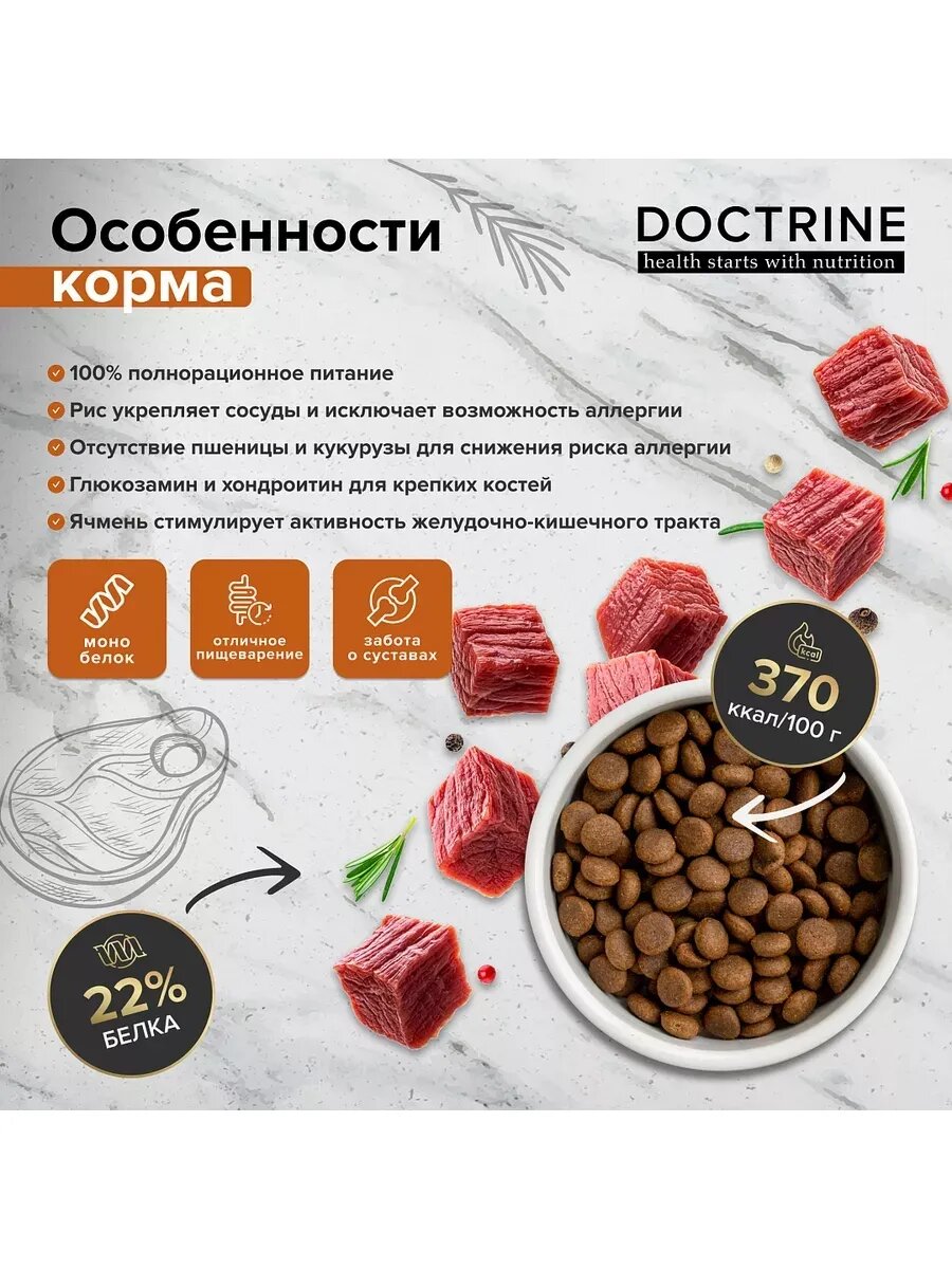 Корм беззерновой для щенков мелких пород с телятиной и олениной DOCTRINE 8 кг 5 680 ₽