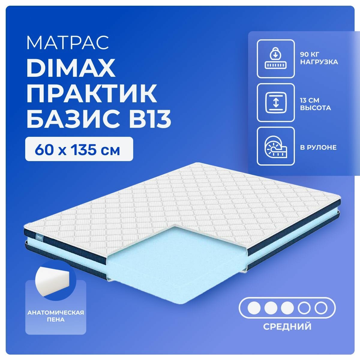 Матрас 60х135 Dimax PracticBasis 13, беспружинный, cредне-жёсткий, пенополиуретан, детский 135х60 информация: