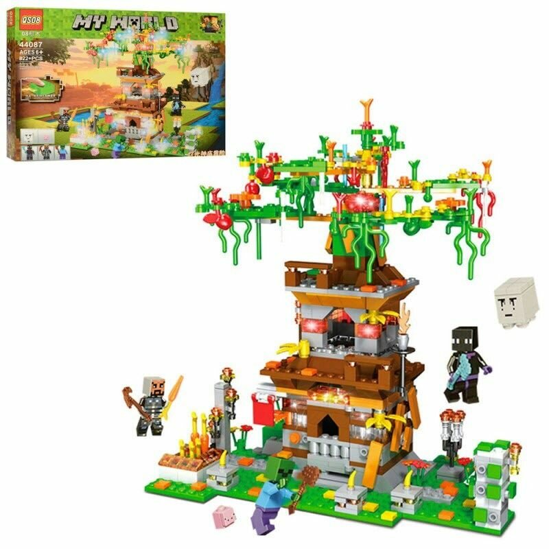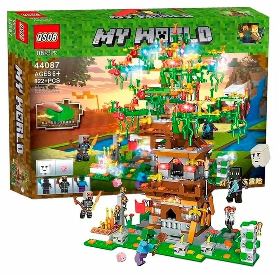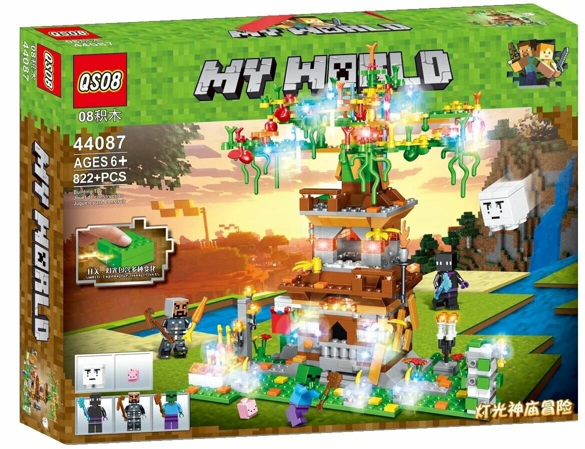 Конструктор Майнкрафт QS08, MY WORLD 44087, "Дерево желаний" с LED подсветкой, 822 деталей