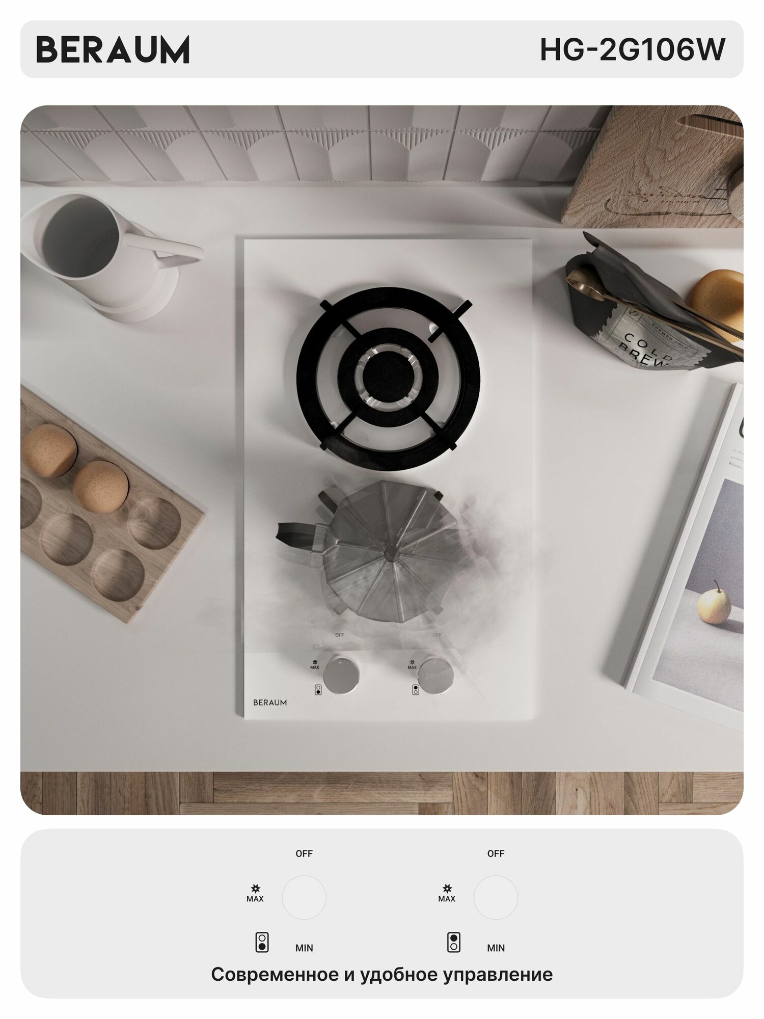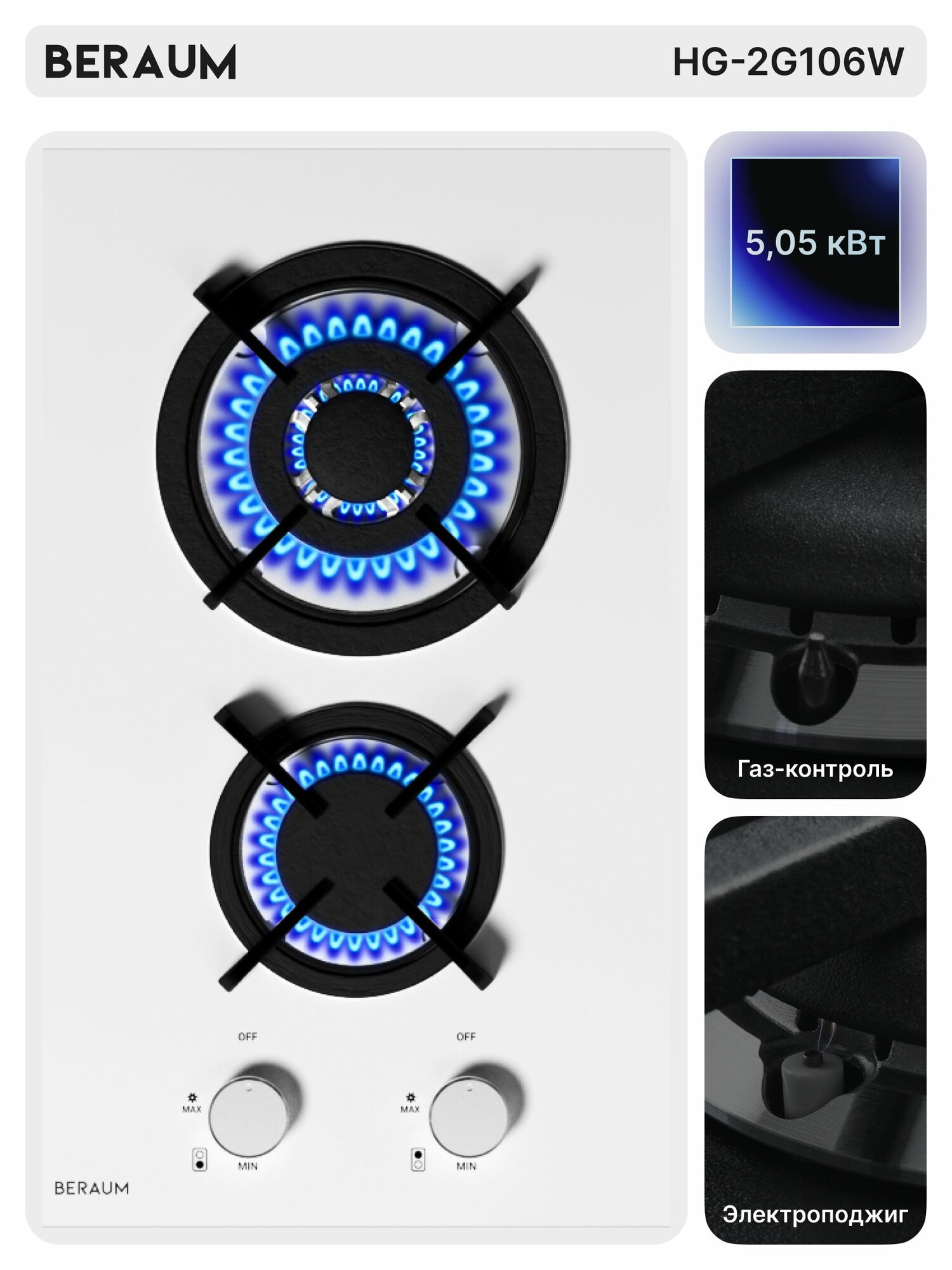 Отзывы на Газовая варочная панель Beraum HG-2G106W, газ-контроль, закаленное стекло